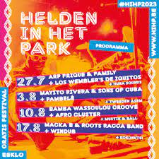 Het Heldenpark in Eeklo is al jaren het decor voor het jaarlijkse gratis festival ‘Helden in Het Park’. Muziekclub N9 verzorgt de affiche op het hoofdpodium aan het kasteel op 4 opeenvolgende donderdagen (27/7 en 3, 10, 17/8) en zorgt voor een mengeling van nationale en internationale acts van over de hele wereld.