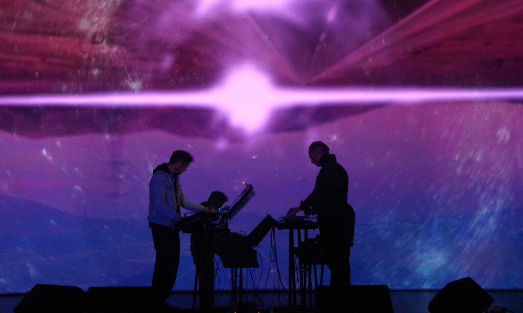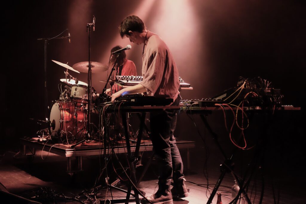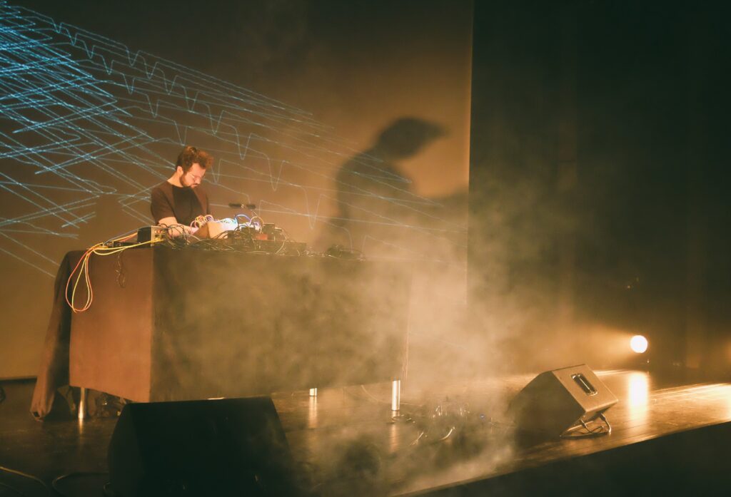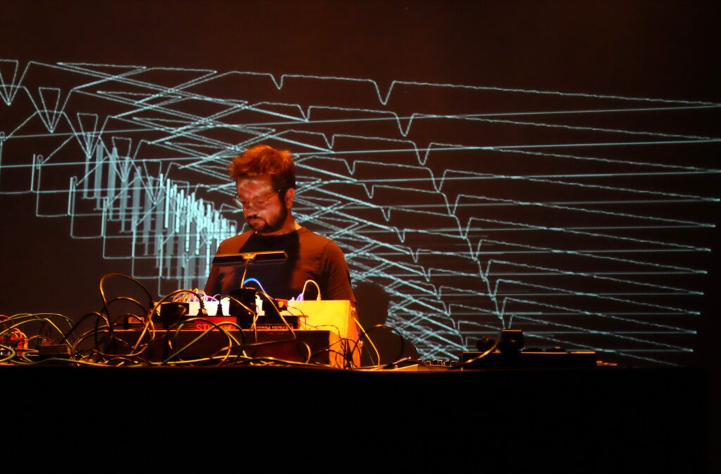 De jonge – voor ons nog onbekende – Gentse producer RT60Fields mocht de spits afbijten. Met enkel wat modulaire synths en sequencers op een tafeltje, liet hij zijn abstracte sounds door de zaal galmen. “Electro-soundscapes uit bakskes voorzien van bliepkes”, klonk het bij het publiek. Abstract, ja, en vrij minimalistisch vonden we. En bij dat laatste wrong het schoentje: het geheel was weinig gevarieerd en zweefde dromerig, maar al te vaak tussen ‘wijs’ experimenteel’ en ‘té minimalistisch’. Heel af en toe doken er donkere zware (bijna drone-)deunen op, wat het iets spannender maakte. In se wel goed opgebouwd, maar te veel van hetzelfde. Goed voor in de hobbykamer, maar nog net niet spannend genoeg voor een publiek.