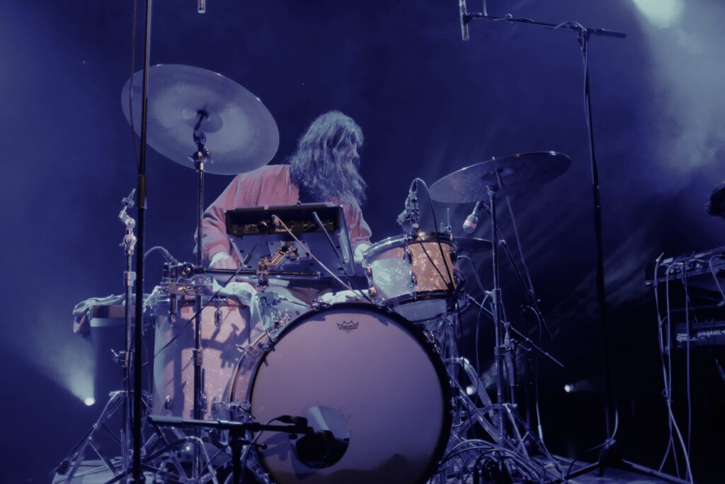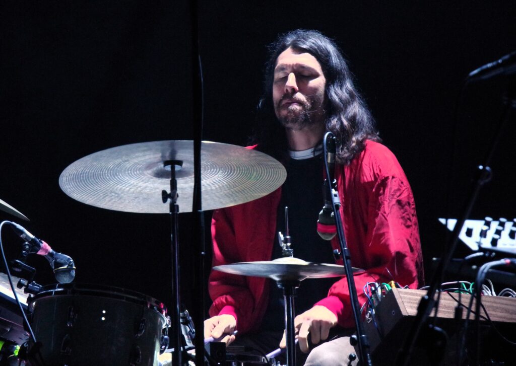 Dijf Sanders of David Sanders – want zo heet hij – maakt een combinatie van synths, electroloops en ijzersterke drums. Wat het hele project zo bijzonder maakt zijn de field recordings die hij daar continu in verwerkt. Soms heel subtiel, andere keren dan weer helemaal op de voorgrond. De ene keer wat geritsel, het geluid van een bereden weg, de andere keer traditionele volksgezangen van over de hele wereld die er tantrisch doorheen geweven worden. Dat Simon Segers hem flankeert als drummer, is dé grote meerwaarde, want de langharige, charismatische kerel die we ook kennen van De Beren Gieren, Black Flower en Absynthe Minded, legt daar de meest funky, donkere, verlichtend tikkende, verrassende ritmes bovenop alsof het zijn persoonlijke adem is die hij aan elke track toevoegt. Nummers uit zijn nieuwste album Supra kregen een knappe plek in deze alles verzwelgende set, waar het publiek helemaal in op ging.
