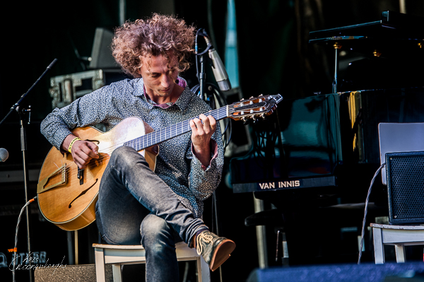Hlib Baisha Trio mocht de spits afbijten. Het trio deed dat met een bijzonder ingetogen en sfeervolle set, waarbij de klassieke gitaar van Hlib Baisha centraal stond. De ritmesectie die de uit Oerkraïne afkomstige gitarist/componist begeleidde bestond uit contrabassist Wolf van Gemert (NL) en drummer André van der Heide (D). De drie composities dat het trio ten gehore bracht, waren bijzonder filmisch en kenden een heel sterke opbouw. Het vergde misschien wat inspanning van de luisteraar, maar op die paar uitermate storende praters na, helaas een constante die avond op het Cultuurplein, kostte het het trio weinig moeite om het plein stil te krijgen.