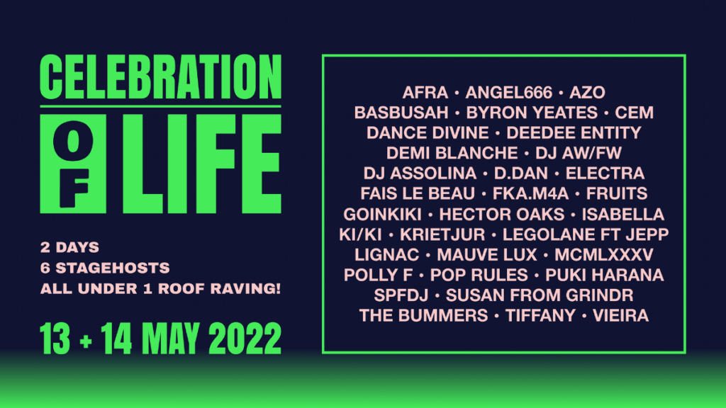 Op 13 en 14 mei palmen zes felbesproken internationale organisatoren uit het nachtleven de Antwerpse Trix in tijdens het Celebration Of Life Festival. Tijdens deze tweedaagse kan je jezelf volledig laten gaan op de beste techno, house en pop van talent uit de underground.