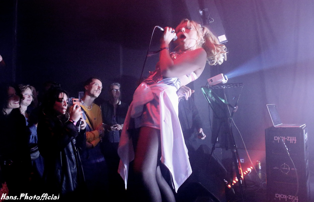 We hadden al postpunk, darkwave en pure punk. Tijd om een eerder verrassend genre uit te testen op een festival als Left Of The Dial. Ver stappen was niet nodig, Poing was vlakbij. Het moet een zaak zijn waar ze toch wel het één en ander gewend zijn want de festivalgangers werden gefouilleerd vóór het betreden van de kelderverdieping. Van een grimmig sfeertje was hoe dan ook geen sprake want we werden getrakteerd op een geweldige show van ene Daisy Capri uit Engeland die optreedt onder de naam Vanity Fairy. Het totaalpakket dat ze vertoonde en liet horen slingerde ons 40-50 jaar terug in de tijd naar de ‘glamour & glitter’ dagen van de jaren ’70, en de vooral vestimentair interessante italo disco kledingtrends van de jaren ’80. Er stonden 2 artiesten na elkaar op ons programma die hun muziek zelf maakten, maar die met bliepjes en klikjes en knopjes van het podium lieten slieren om er in beide gevallen op een totaal andere manier mee om te springen.