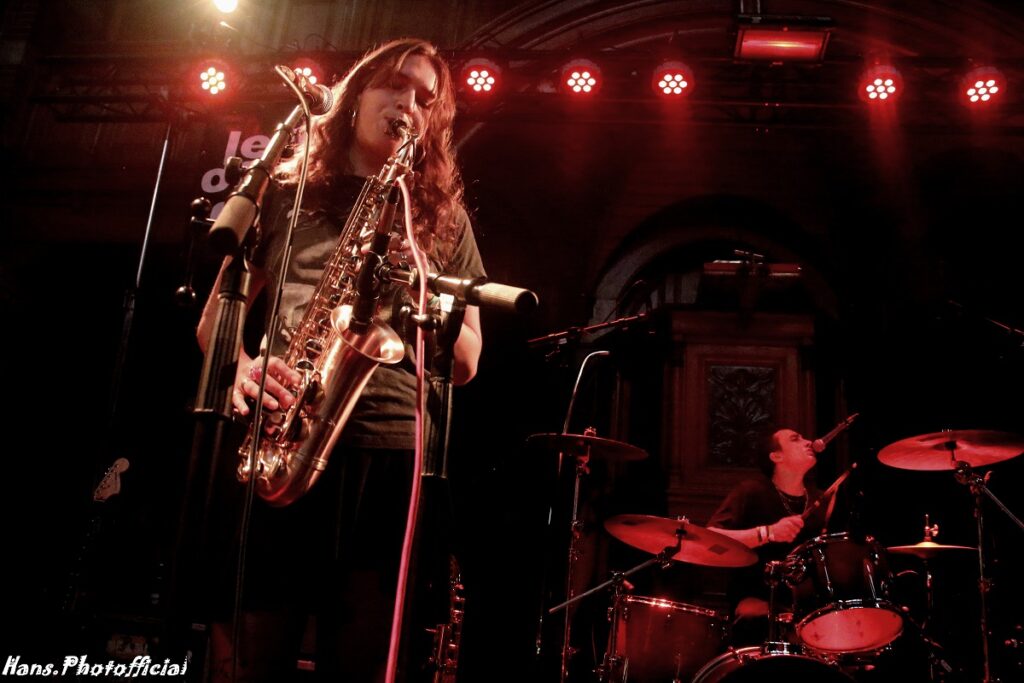 Het geluid van de drie kunnen we best omschrijven als veel lawaai maar lekker lawaai. Het deed sowieso aan IDLES denken, zoals in het nummer Always Happy. De manier van zingen was eerder rauw en een uiting van frustratie, doch dit terzijde. Andere nummers deden ons denken aan Nirvana’s Bleach, getuige daarvan Feed Me met die typische jengelende gitaar en roffelende drums, en ook Pixies passeerden vaak door onze gedachten. How Does It Feel? is een volbloed I’m Amazed van de band rond Black Francis, en dan nog een deel in het Frans. Poppy vertelde dat ze in Brussel opgroeide. Grootmoeders liedjes duren gemiddeld 2 volle minuten, dus het ging als de gesmeerde bliksem voluit.