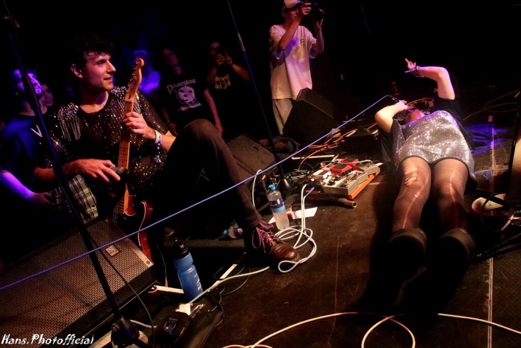 Onderschat vooral ook niet de stille maar steeds lachende kracht, Rebecca Liston, op de keyboards. Zangeres en bassiste Paris Richenson had vooral haar werk met het hoge tempo van Stella en zeker met haar grapjes tussendoor. Paris zong de meeste nummers maar kreeg vaak begeleiding van Stella en Rebecca, en een paar keer nam Stella op haar eentje de zang honneurs waar. De samenzang was al prachtig tijdens het oudere Lift Off! dat niet voor het laatst refereerde aan The Velvet Underground maar ook The Stranglers. Ook de punkvibes van een band als Death hoorden we in de nummers weerklinken wat een totaalbeeld van een geflipt onderonsje met Syd Barrett en Jim Morrisson leek op te leveren. Waar het nieuwe Placeholder nog teveel doelloos ronddreef was Monument zijn naam zeker waardig. Zotte riedels uit de synths van Rebecca werden opgesmukt met diepe bassen en hete riffs.