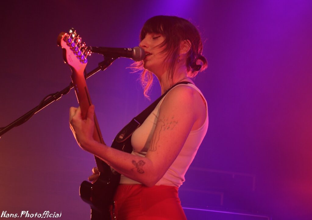 Gelukkig stond Jillian Medford, zoals ze eigenlijk heet, niet geboekt voor stand-up comedy maar om Sucker te presenteren. Dat is haar vierde album die een klein jaar uit is. Drinking the Lake (uit Show Me How You Disappear) opende zonder dralen de set. Ian zag er beeldig uit in een zwierig rode rok en rode sokjes. Haar stemtimbre deed ons overigens vaak aan Sabrina Carpenter denken, het ultieme synoniem voor zwoel. “Kiss me like you mean it, your spit tastes different” beet ze ons met de glimlach toe in Your Spit.