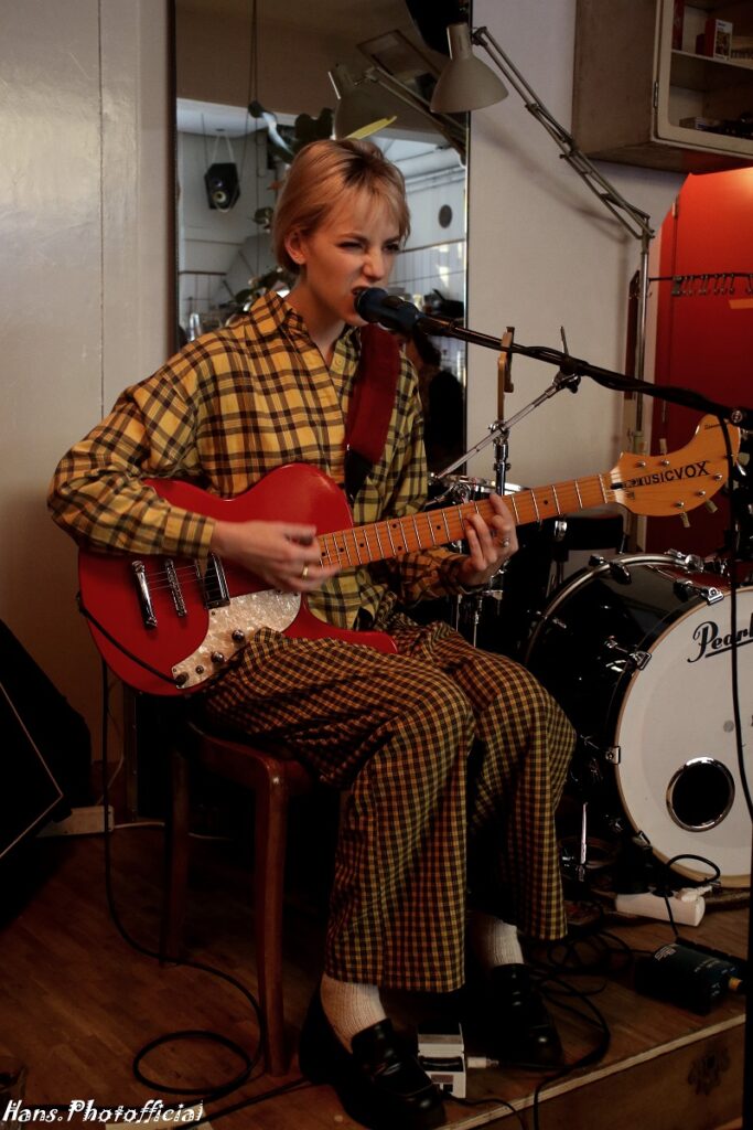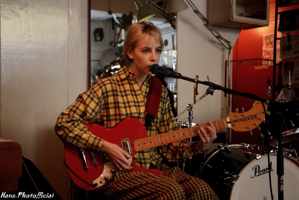 French Bath bijvoorbeeld is gewoon zich proper maken door parfum te spuiten in plaats van een bad of douche te nemen. Ooit speelde ze in een indierockband Poppies en in Vrijmoed zat ze solo hoewel ze in de States een heuse band in de garage heeft staan. Toen we haar tijdens het optreden vroegen waar haar band was zei ze kort met een fijn lachje: “at home”. Haar muziek is beïnvloed door popmuziek uit de jaren ’50, en de gekende bands als Beatles en Rolling Stones waaraan ze later Pixies en Television toevoegde.