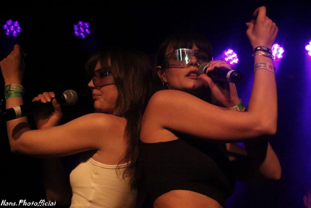 Het festival naderde haar einde dus zochten we terug onze weg naar het epicentrum rond Arminius en Rotown want daar werd de afterparty ook georganiseerd. De naam Disgusting Sisters was simpelweg te mooi om te negeren, dus we vertrokken spoorslags naar Rotown. Volgens de pers gaat dit om Jules & Josie, maar wij noemen ze toch nog gewoon liever Josephine Darcy en Julianna ofte de Hopkins Sisters. Het zijn jonge meiden uit Londen die onwezenlijk aanstekelijke rocksongs brengen met rond zich het triumviraat drum-gitaar-bas. De jongens in de band kunnen zich voluit geven en dat doen J&J nog meer in een niet aflatende choreo met duo-zang, duo-dans en vrijwel identieke outfit. Julianna droeg een zwart sport-topje, Josephine een wit.