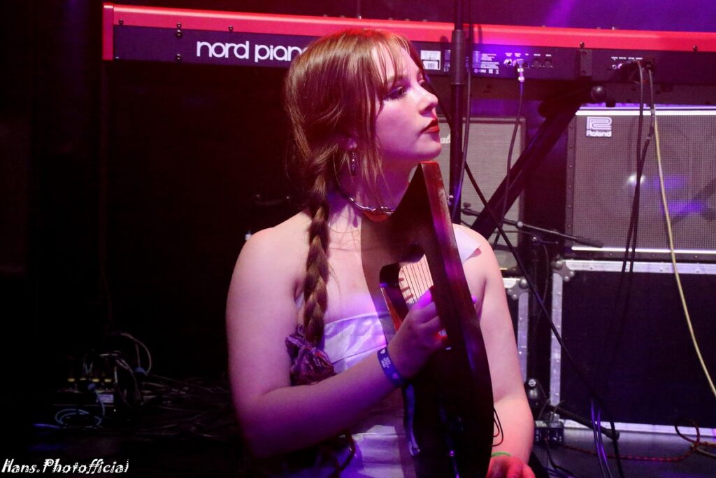 Beginnen met het slechte nieuws. Je zal niets terugvinden op streamingdiensten want WIP heeft nog geen nummers uit. Het kost handenvol geld, de cijfers bespaar ik jullie. Toeren met 6 is al evenmin goedkoop. Achter beide gitaristes zat drumster Hannah Mason en naast haar stond violiste Miranda. Aan de andere zijde zat de backing vocaliste, pianiste en ‘lieriste’ of hoe heet iemand die op een lier speelt? In ieder geval heet ze Emily Izen Row en de inbreng van de lier gaf het geheel extra pigment.