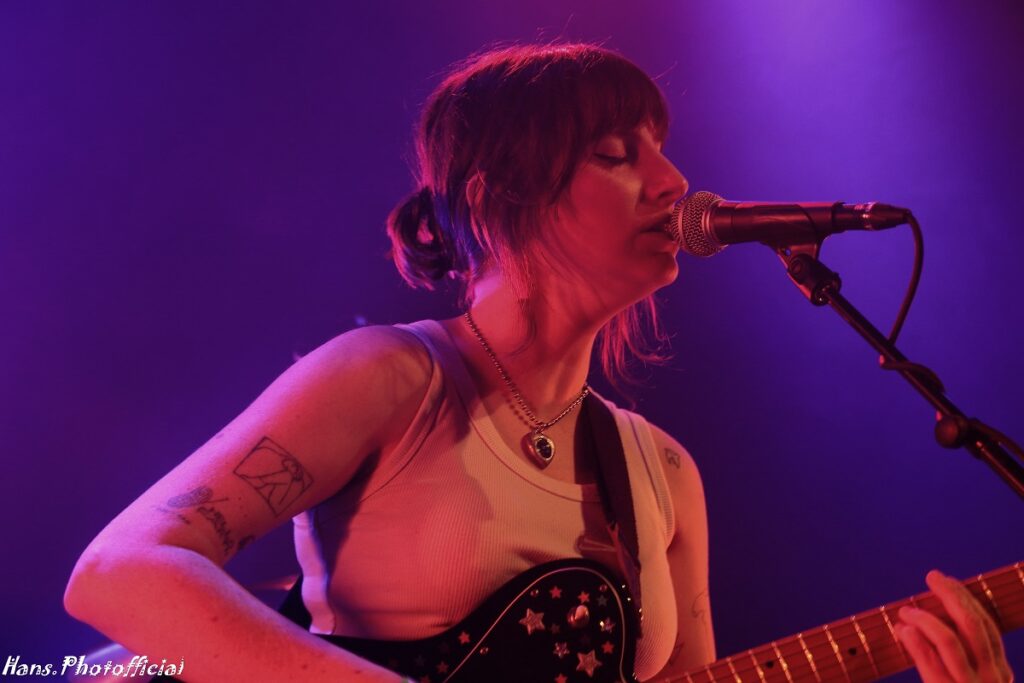 Smoking Again was voluit gespeelde indierock, versterkt door de nodige gestes van Ian Sweet op het podium. Leuk dat ze zelf euforisch werd van haar eigen nummers. Het breekbare Clean volgde en Jillian bedankte het publiek om zo talrijk te zijn opgedaagd en zo intens te luisteren. Iemand op de eerste rij antwoordde “to me you are today’s headliner”. Een beetje voorspelbaar voor wie de Botanique-set meemaakte hoe het optreden zou aflopen. Sucker werd gevolgd door Sword uit 2021.