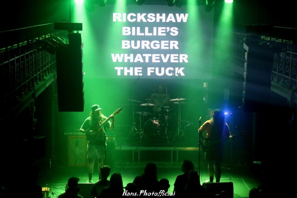 Zo gingen we een kijkje nemen in het Museum bij Rickshaw Billie’s Burger Patrol. De naam alleen al is vrolijkmakend en dat was hun stonerrock-sound evenzeer. De grappigste backdrop in jaren maakte het plaatje volledig: Rickshaw Billie’s Burger Whatever The Fuck. Een blik op de monumentale drummer, Sean St Germain, zegt ook genoeg. Big Dumb Riffs is hun zesde album en zelfspot is hen duidelijk nooit vreemd geweest. Beef Beast kwam een jaar eerder uit en hun uitgangspunt lijkt wel een kruising te ambiëren tussen Pantera en Primus. Desalniettemin is de korrelige vette basdrum het typerende geluid voor een flinke hap stonerrockmetal en dat was wat we een uur lang te horen kregen en het verveelde geen seconde.