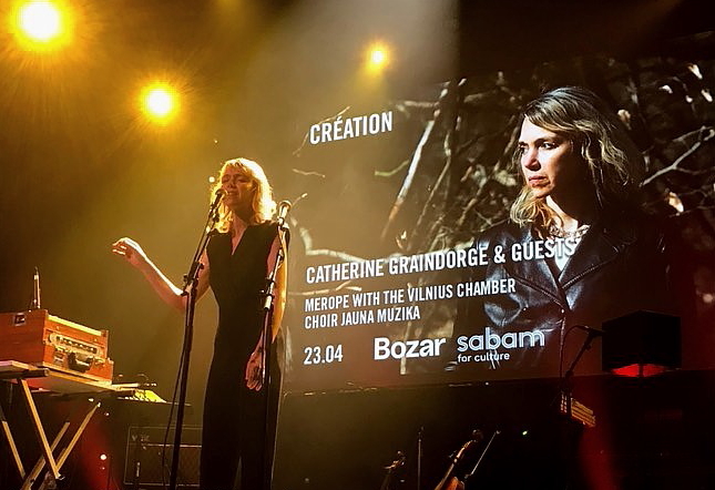 Vóór en nà de persbabbel kwamen twee artiesten die op Les Nuits zullen spelen al langs voor een showcase. Catherine Graindorge was de eerste met haar overstuurde viool op een loop van noise die uit een effectenpedaaltrein werd gepuurd. Ze kwam haar nieuwe project Songs For The Dead voorstellen en dat smaakte naar veel meer. Op 23 april zal ze op het podium van de Salle Henry LeBoeuf in Bozar te zien zijn. De andere showcase werd verzorgd door Clara!, die zal op 29 april optreden in het kader van Bota By Night in de Rotonde. De Spaans-Belgische danst en rapt op reggaetonbeats wat een heuse stijlbreuk vormde met de set van Graindorge maar op een totaal andere manier evenveel indruk maakte.