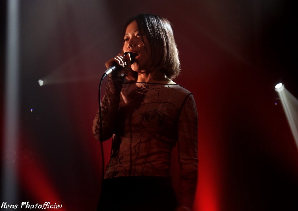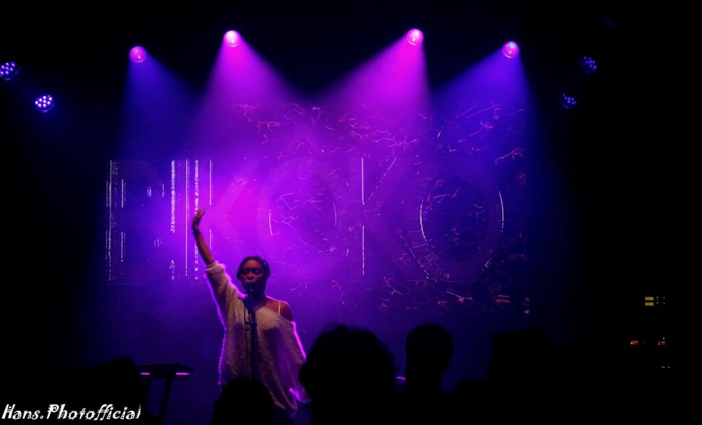 We waren al eens gepasseerd in het Museum voor de Britten van Blue Bendy maar die hadden al irritante materiaalpech middels een kapotte gitaar waarbij zelfs een schroevendraaier en een klusjesman werden opgevorderd. Er stond immers niemand in de zaal met een gitaar. Het zal wellicht niet bevorderend gewerkt hebben voor het zelfvertrouwen maar wij vonden dat hun nummers kant nog wal raakten, een soort Black Country, New Road, afgespeeld op een verkeerd toerental. Maar het Museum had na de set van Murray een bijzondere verrassing voor ons in petto. Eergisteren pas zegde Lady Donli af en Bikôkô verving haar dus te elfder ure. Laat Bikôkô toch wel de surprise van de chef zijn en een grote revelatie op deze Weekender editie van Les Nuits. Het voelde aan alsof ze een jeugdspeler is die invalt bij een 1-0 achterstand waarna ze in de laatste 5 minuten gelijkmaakt en de winning goal scoort.