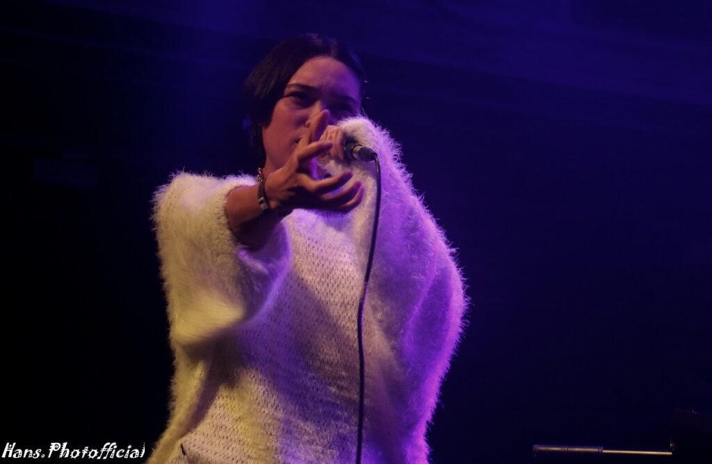Haar nummers komen uit een keyboard en werden op inventieve wijze vervormd of verzilverd door haar Ableton die ze liefkozend “my girlfriend” noemde. En dan zouden we nog voorbijgaan aan haar zomers zachte stem die elk herfstblad tot een niemendalletje versnipperde. Haar interactie met het publiek was zalig, ze danste uitbundig en had leuke bewegingen in huis die de hele set ook visueel aantrekkelijk maakten.