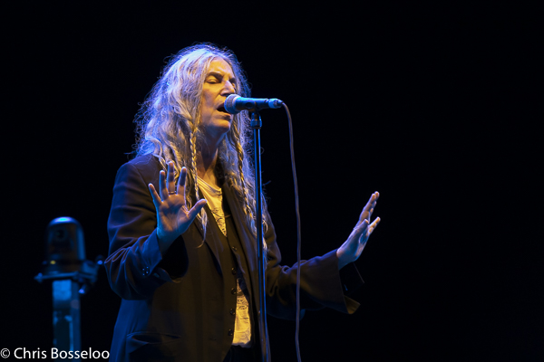 Patti Smith. People have the power, behalve de fotografen dan, want die mochten de fotopits niet in en ook de cameraman die ter goeder trouw zijn werk deed kreeg een knarsige oplawaai van de oma-punk toegesmeten. Maar voor de rest een goedgezinde 72-jarige Patti Smith. Ze weet ondertussen al lang dat de hippiedromen niet voor deze wereld bestemd zijn, maar de legende was gelukkig. Niet alleen omdat de Kaai haar naam scandeerde, maar ook omdat haar zoon Jackson (tevens gitarist bij mama) zijn verjaardag mocht vieren in Lokeren. Er kon zelfs een taartje af, en met een optreden dat zowel respect afdwingt voor de kranige tante als de wenkbrauwen doet fronzen voor de nogal bizarre setlist. Laten we maar bij het einde starten. Het belang van Patti Smith in de alternatieve muziekwereld kan niet groter zijn. Gaande van het okselhaar van Easter dat een statement was als geen ander, tot Horses en het baanbrekende Radio Ethiopia. Een backcatalogus waar menig artiest zijn leven zou voor willen geven, toch hield la Smith het op de meebrulklassiekers Because The Night en een resem covers die de band bijna herleidde tot een verheven jukeboxband met een icoon aan het roer. Niet eens covers waar je van opkijkt. Beds Are Burning van Midnight Oil staat misschien niet meteen in de platenkast van de doorsnee Smith-fan, maar wel Walk On The Wild Side van Lou Reed, Are You Experienced? van Jimi Hendrix, Free van The Rolling Stones, After The Goldrush van Neil Young en uiteraard Gloria van Them. Goed gebracht, en zo met verve dat menig bejaarde pisjaloers kan zijn op la Smith. Maar moest dat nu echt? Entertainment mijnheer, maar Patti Smith is zo veel meer dan dat! Gelukkig konden we een traantje wegpinken bij Dancing Barefoot, konden we ons de ultieme hippie wanen bij Ghost Dance of beseften we bij People Have The Power dat ook Smith behoefte had aan een fm-hitje. Smith bewees in Lokeren dat ze nog altijd alive and kicking is, geen reet om een streepje make-up heeft, maar vooral dat ze tevreden is met het etiket van feestrockband.