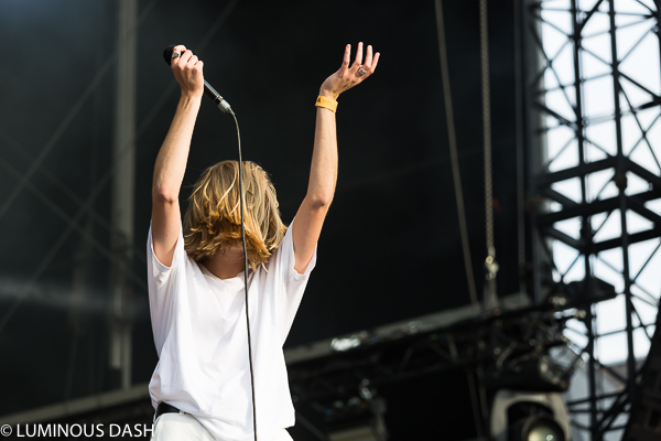 John Father Misty dan. Joshua Tillman zal zich zijn passage op Lokeren wel anders hebben voorgesteld. Tijdens de vliegtuigvlucht gingen een paar koffers de mist in waardoor de man uit Washington eruit zag of hij net van de ontbijttafel kwam. Weinig glam dus, gedwongen improvisatie, maar met bijzonder veel pracht gebracht. Hangout At The Gallows opende de set en meteen werd duidelijk dat wie de hamburgerkramen boven deze melancholische troubadour koos een levensgrote vergissing heeft gemaakt. Vernieuwend is het allemaal niet, eerder de ontmoeting tussen Strand Of Oaks (het explosieve This Atom Bomb And Me)en Billy Joel (Ballad Of The Dying Man) , maar wat een pracht en kracht komt er uit die stem. Soms van simpele countryliedjes die je kan vergelijken met Kris Kristofferson, tot de AOR-rock van Christopher Cross. Eenvoudig, maar altijd grandioos gebracht.