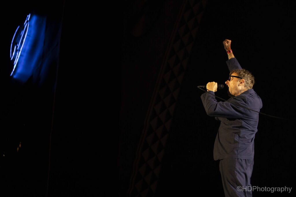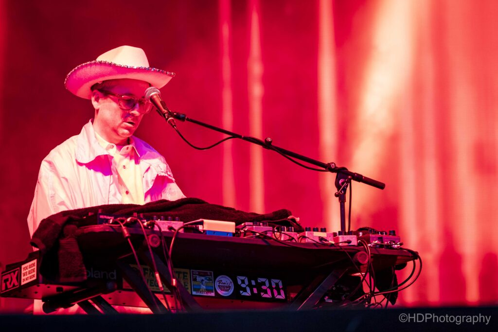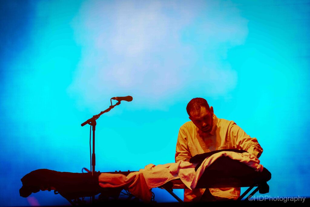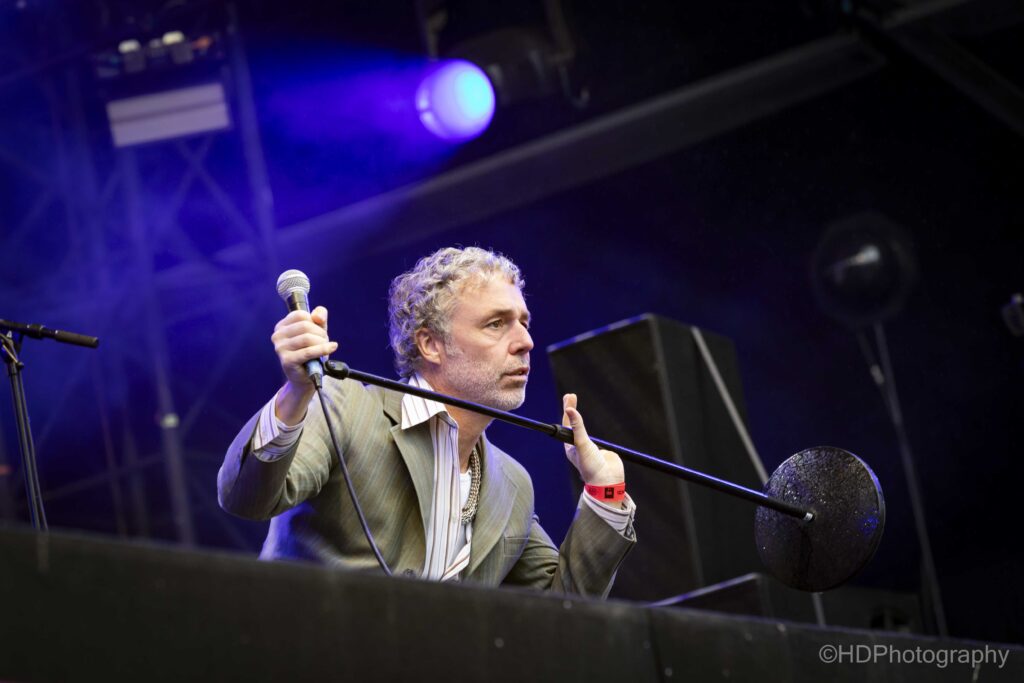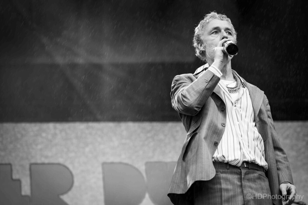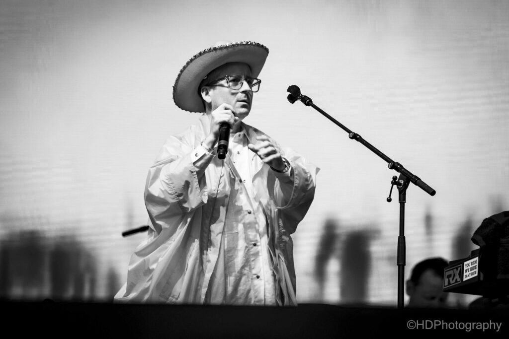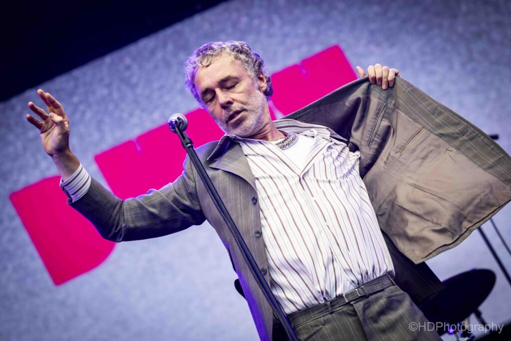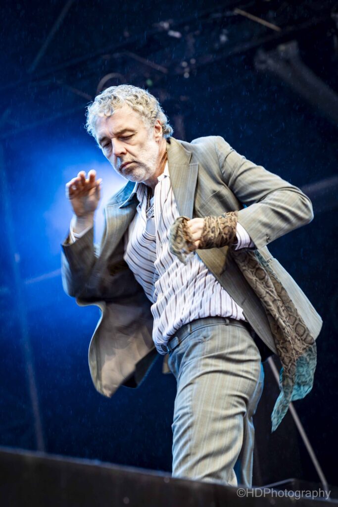 Het oudere Palm Trees paste op zich beter bij zijn podiumgekte waar de pianiste met zwart ushanka-achtig hoofddeksel en de andere bandleden eerder standbeeldachtige poses aannamen. Oké we zagen haar vaak smakelijk lachen, dat is waar. Baxter (These Are My Friends) was een samenwerking met Fred Again en dus per definitie een ‘beats-driven’ vreemde eend in de Dury-bijt. Dit soort nummers en zijn présence zorgden er voor dat zijn concert de hele tijd boeide zonder echt opzien te baren.