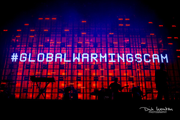 Geen Tricky om Karmacoma op te luisteren maar daar hadden ze alweer erg beklijvende visuals in de aanbieding. Een vrouw die bijna smachtend ‘I just wanna be myself’ roept, beelden van groepen mensen die in paniek zijn door een corrupte en gewelddadige wereldleiding, zinloze oorlogen en het ontstaan van cosplay om aan de werkelijkheid te ontsnappen. Logischerwijze was Teardrop met Fraser op zang het zoveelste hoogtepunt. Een nummer dat ze zong in een mist van sfeervolle lichtbundels. Ongeloof toen hier een flard Levels van Avicii aan gekoppeld werd.