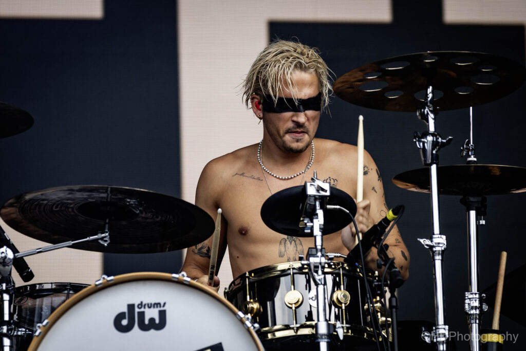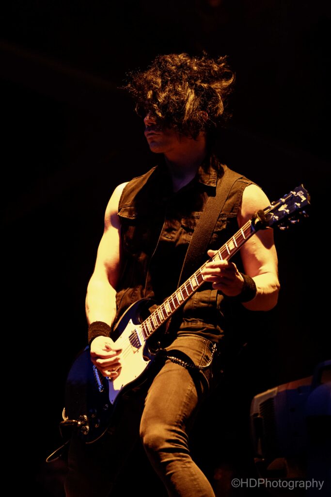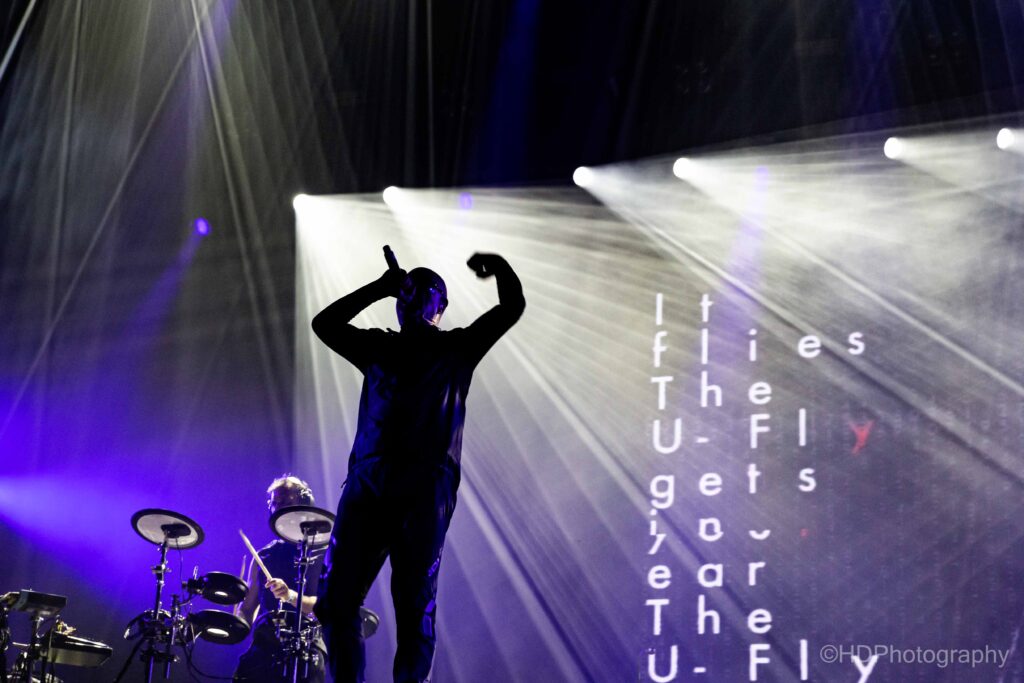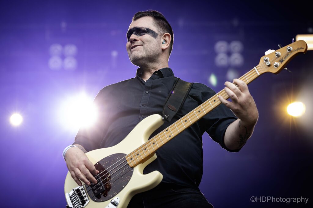 Heerlijk diepe bassen weerklonken, onder een knap belichte show en het voordeel van zo’n groot buitenpodium is dat er geen rookmachine zwaar genoeg is om Eldritch – als naar goede gewoonte – continu volledig in de smoor te laten opgaan.