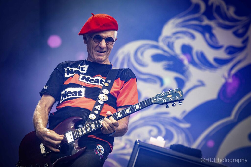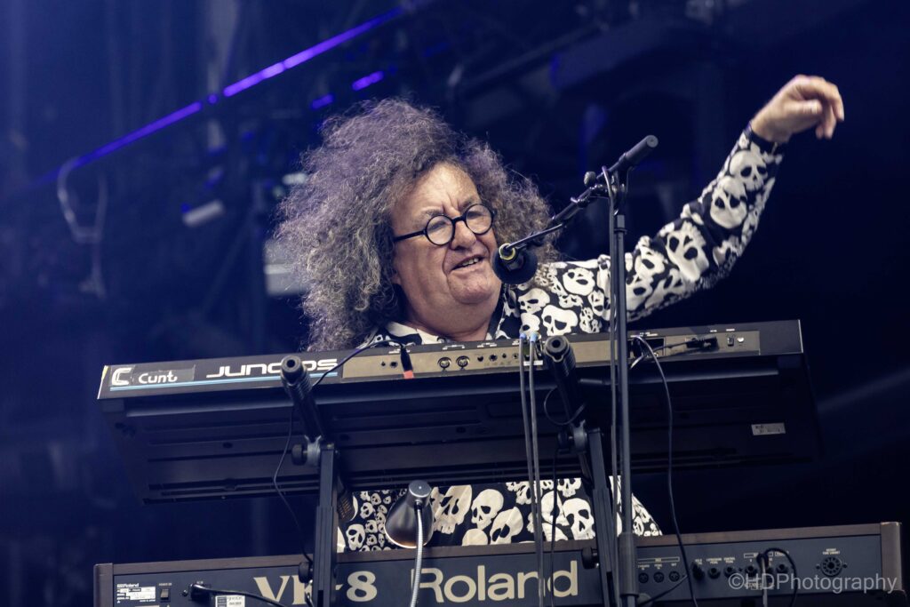 Daar was intussen punkband The Damned (al meer dan 50 jaar op de teller intussen!) het publiek al helemaal aan het verleiden. ‘Neat Neat Neat’ prijkt er op zijn t-shirt en de rode baret staat op geen enkel hoofd gepaster dan op zijn hoofd… Captain Sensible: de zeventigjarige bezieler / gitarist / songwriter die bekender is als zijn band zelf. Zanger Dave Vanian, is dan weer even charmant als Sensible bekend is. Een elegante man, strak in klassiek zwart pak, flirt zowaar niet enkel met de eerste rijen van het publiek, maar verleidt zowaar ieder zieltje op de festivalweide met zijn sterke stem en podiumspeelsheid vol finesse.
