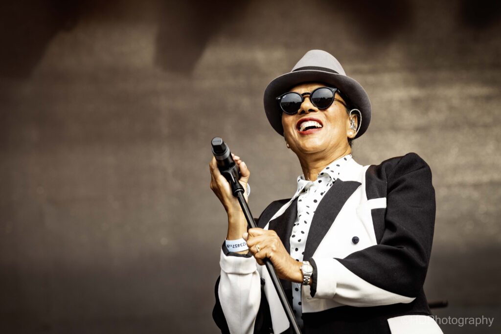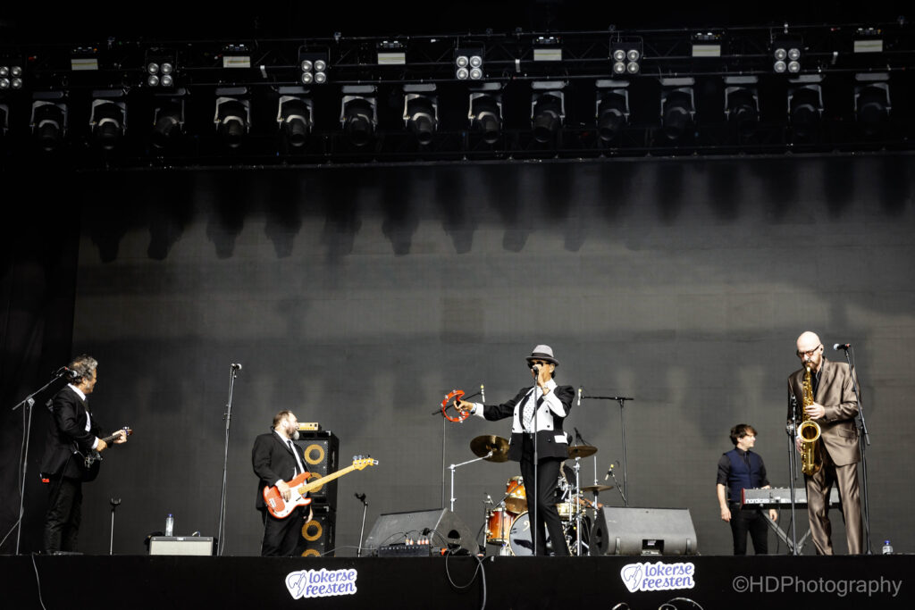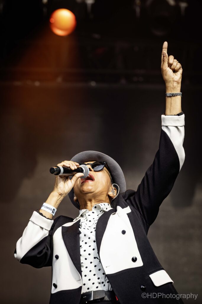 Ook al stond er aanzienlijk minder volk aan het hoofdpodium dan bij de eerste twee bands, ze brachten een heerlijk relaxed sfeertje die zondagmiddag en me knappe blazers brachten ze toch heel wat kleur op die donkere weide, met hits als On my Radio,Three Minute Hero en Too Much Pressure. Maar even goed met covers, zoals The Avengers Theme (van Laurie Johnson Orchestra), Carry Go Bring Come (van Justin Hinds & The Domino’s), Time Hard (van George Dekker) en Train To Skaville (van The Ethiopians).