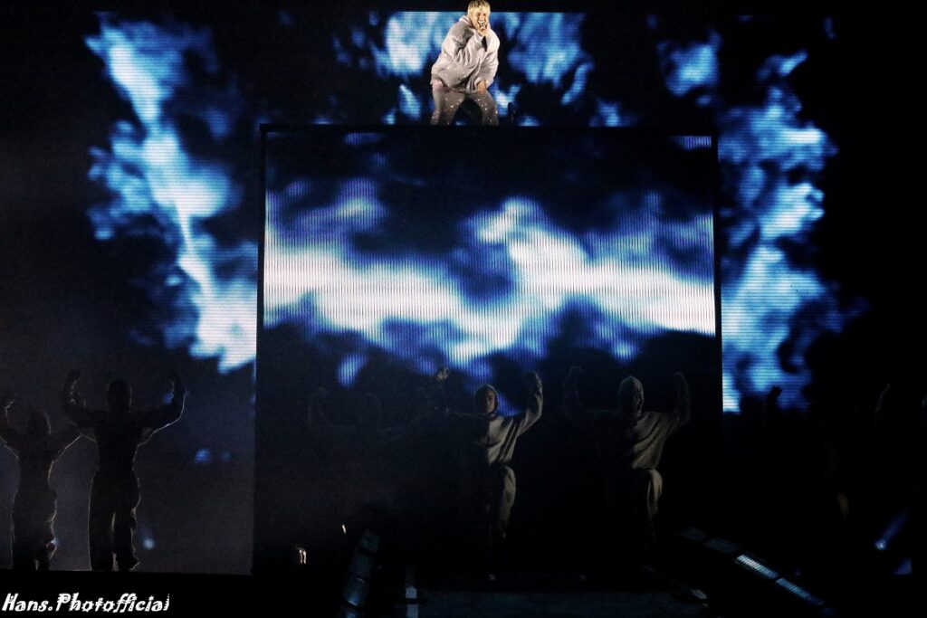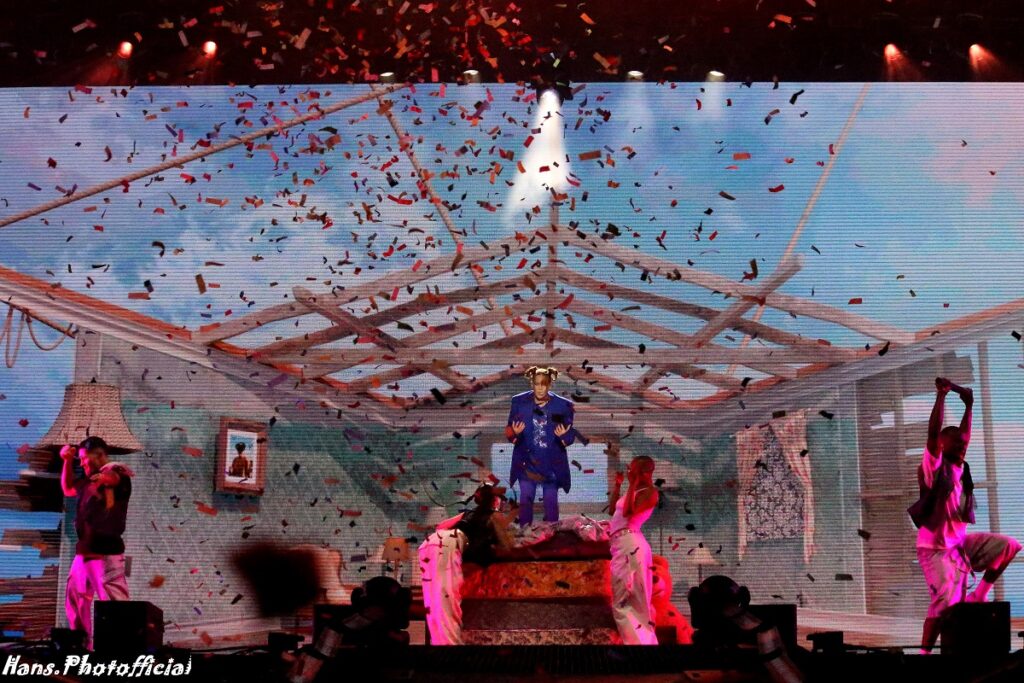 Colombie fonkelde als nieuw in zijn pastelkleurige glitter-outift. In Princes had hij geen dansers nodig want hij demonstreerde zelf zijn pasjes. Vocaal vonden we hem hier op zijn best. Sterk nummer hoe dan ook dat eindigde met een eruptie van witte rookkolommen.
