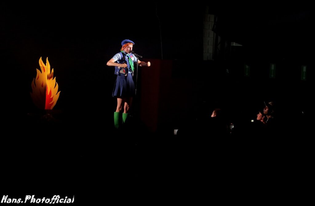 Pauw is biseksueel en identificeert zich als vrouw, maar vindt naar eigen zeggen “Alle voornaamwoorden oké”. Het mannelijke podiumpersona van Elmer (gehesen in pak en met een plaksnor) is een uiting van haar blik op gender als “een performance”. Super grappig was haar outfit in Lokeren. Uitgedost als een padvinder met tent zorgde ze samen met handpop Skipper, de dj hond voor een heerlijk spektakel.