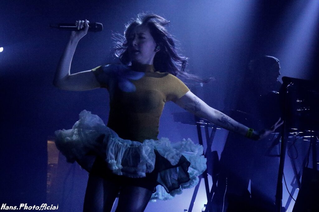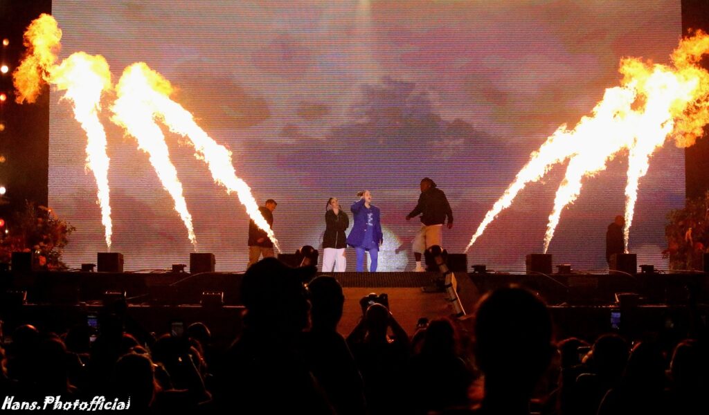 Ze had een gigantisch platina single-succes bij samenwerkingen met Marshmello, Clean Bandit, David Guetta, Doja Cat, Shania Twain en Little-Mix. Haar optreden in Lokeren was een groots opgevatte show met spektakel, pyrotechnische snufjes, confetti, theater en verbluffende podiumwissels. Wat bijvoorbeeld tijdens de eerste drie nummers passeerde tart elke verbeelding. We zagen als het ware alle showelementen van een optreden van 3 uur gebald in de tijdspanne van drie songs en kwamen ogen en fototoestellen te kort. Tijdens opener Alarm liet niets vermoeden hoe zot het allemaal nog zou worden. Ze droeg een blauwe outfit met een baseball truitje en de kersverse mama week wat dat betreft af van de outfits die popdiva’s tegenwoordig op een podium laten bewonderen.