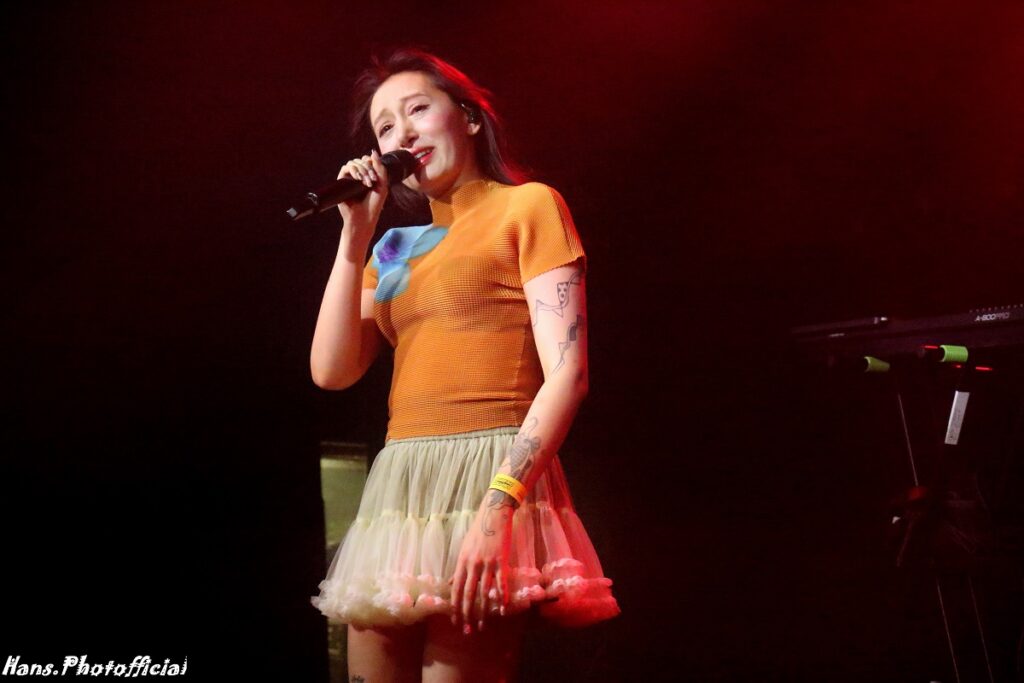 De Limburgs-Oezbeekse was de meest enthousiaste podiumpersoonlijkheid van dag 10 op de Lokerse Feesten. Haar electro-gabberpop distilleert ze tot nummers waarvan de energie afspat. Haar kompanen op de boordcomputers en drums doen qua enthousiasme overigens helemaal niet onder voor Sabina. Voor ons links op het podium stond Umi Defoort die je ook al kan kennen van Zwangere Guy.