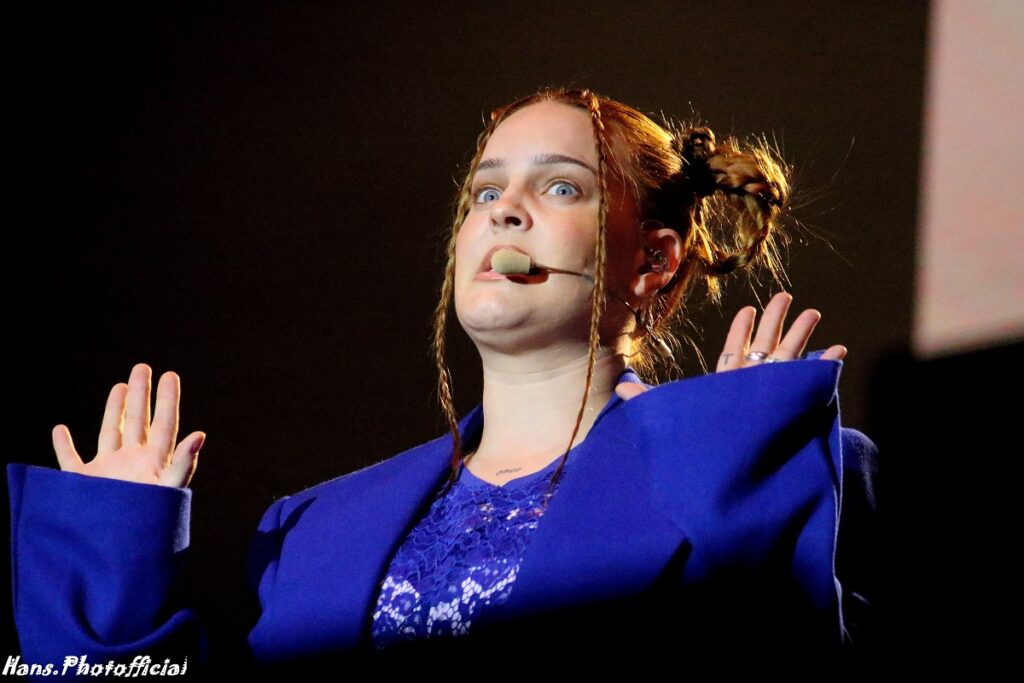 Vaak hoor je een zanger of zangeres iets zeggen waarvan je denkt “Ja het is wel gemakkelijk om dat te zeggen, maar concreet schieten we hier als individu niets mee op”. Sabina zei op een bepaald moment dat niemand in haar geloofde toen ze zei dat ze muziek wilde maken. “Ik geloof in jullie, dus dat hebben jullie al vóór op mij. Als je droomt, ga die droom achterna. En droom groot.” Sabina klonk zo oprecht en heerlijk eerlijk dat we met graagte allemaal onze middelvingers opstaken tegen al de mensen die niet in ons geloven. Het lag volledig in lijn met haar optreden waarvan de essentie en relevantie de hoogste toppen scheerde. Je moet overigens geen seconde denken dat je zonder zweet een optreden van The Queen of Strawberries kan uitzitten. Springen en dansen zal je!