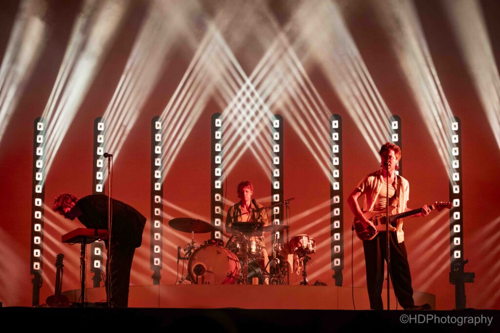 Mooie sobere podiumsetting trouwens, met verticale lichtzuilen achter de band die voor mooie silhouetten zorgde. Balthazar bracht zijn vertrouwd geluid met afwisselend Jinte Deprez en Maarten Devoldere aan de lead zangpartij. Naar het einde van de set kwamen de hits tevoorschijn: Fever, Bunker en Loser zorgden voor de climax bij Balthazar, voor een half gevulde Grote Kaai. Wie gebleven was, vond het super.