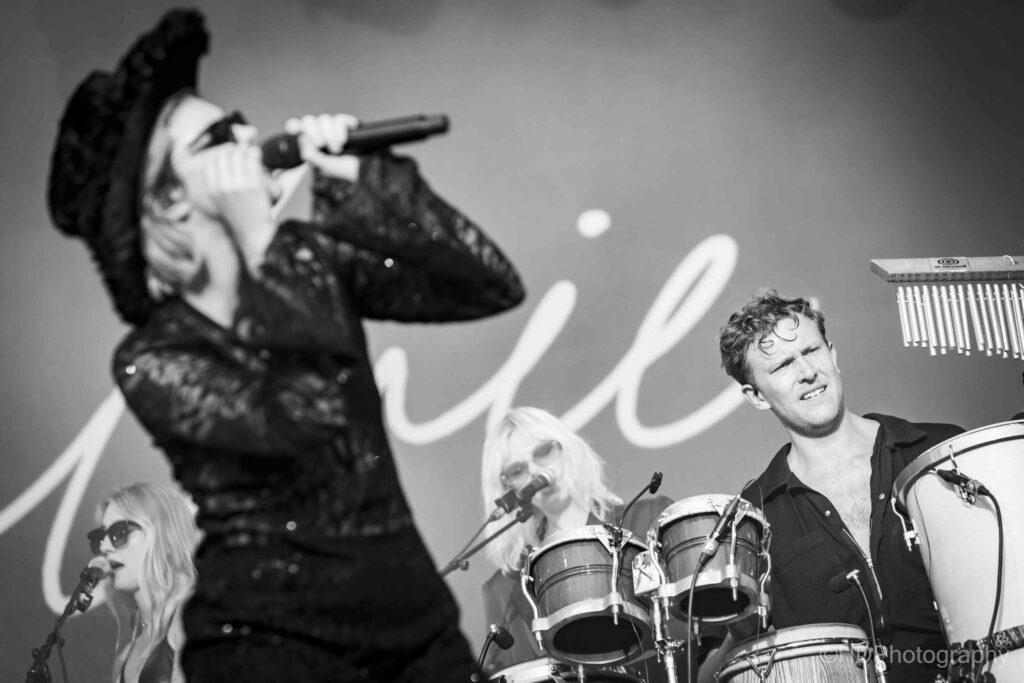We kregen een theatrale set, met de vijfkoppige band compact centraal opgesteld en la Kreusch die de rest van het podium als bühne voor haar performance kon bespelen.
