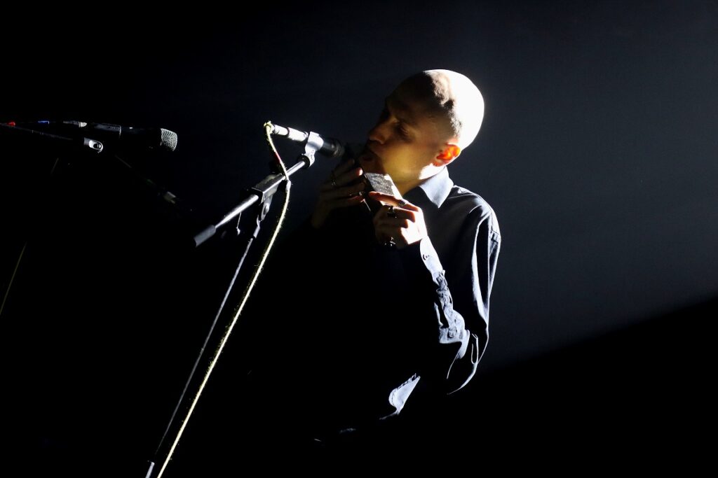 Omdat een spot op het midden van de rotonde gericht was, stond Blumberg eigenlijk achterin de lichtbundel waardoor het leek alsof zijn lichaam bijna 3 meter lang was en hij een lange cape droeg. We zeiden het toch, Voldemort? Het hele optreden lang leek hij zich totaal ongemakkelijk te voelen, niet zozeer fysiek maar vooral mentaal. Het leek constant veel te veel van hem te vergen wat maakte dat niemand bijna durfde bewegen. De sound leek sterk op wat Kali Malone doet, maar er zit meer nuance in en tegelijk meer pijn en verderf. We zagen onlangs Hatis Noit en die truukjes gebruikte hij ook. Als luisteraar waren we erg onder de indruk maar na een half uur werd het zelfs voor ons te lastig om er nog van te genieten. Geen enkel optreden zou een kopie van een ander zijn. Experimentele zang werd ook in de rotonde een schijnbaar lugubere improvisatie van zijn onmiskenbaar talent, wie weet zelfs genie.