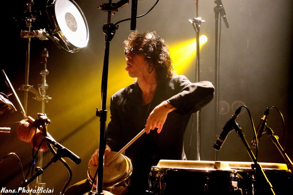 Alex kon zich al meteen uitleven op zijn drums die quasi geen vergelijkingspunt hebben met een normale drumkit. We zagen een bonte verzameling Afrikaanse percussie-elementen en een constructie in de lucht met een ronddraaiend rad en een doorzichtig drumgedeelte. Veel percussie werd al strelend en tokkelend uitgevoerd en veel subtiele geluiden werden door minimale aanrakingen gecombineerd met de warme spaarzame elektronica van Lucrecia. “The vision shows us that time is spiraling out of control. Love and strife are the two singular states dominating the wheel of time”. Enviada was live behoorlijk indrukwekkend. Het klonk als David Lynch die een Zuid-Amerikaanse variant op Twin Peaks moest schrijven. Dalt klonk hier vocaal zwoel en mysterieus. Het gros van de set kwam van de recente plaat maar de volgorde werd danig omgegooid.