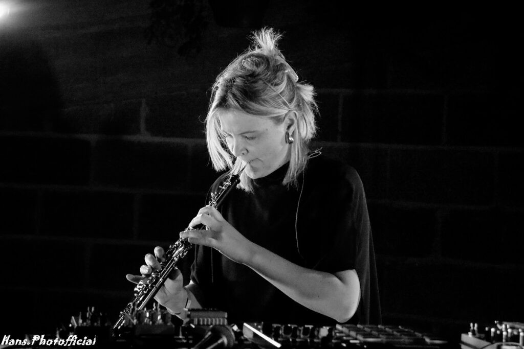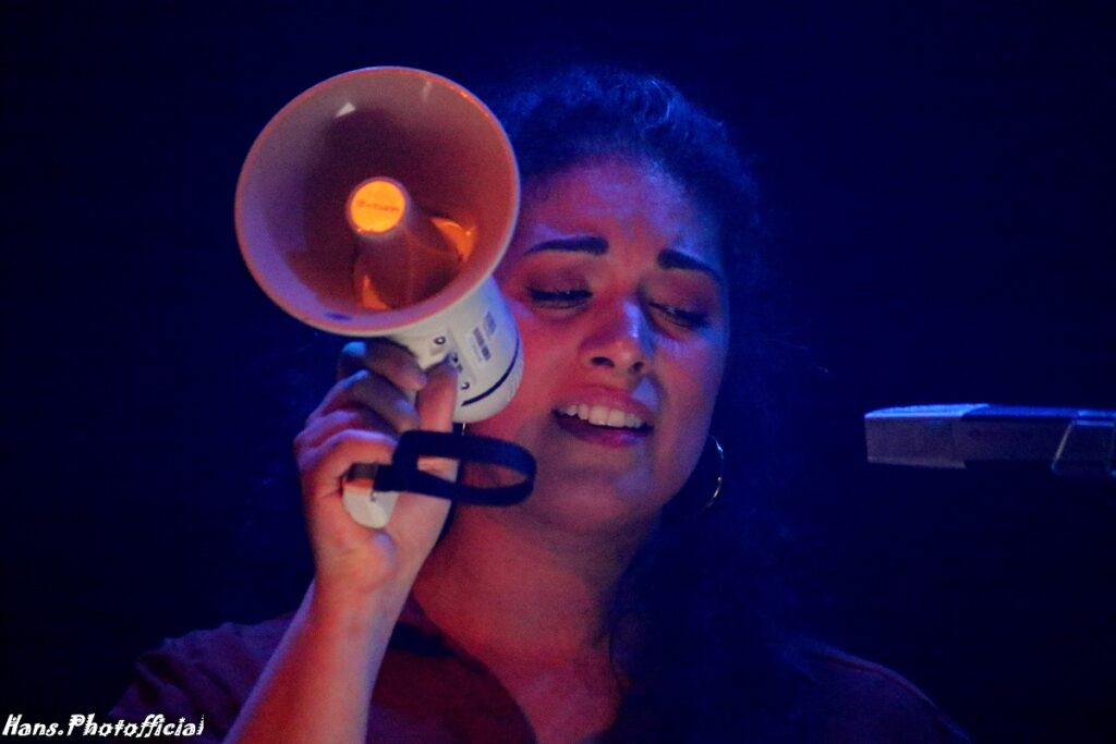Er werd Nederlands geopend in zalen 1 en 2. Nu ja, Genevieve Clare Murphy is van origine Schots maar woont nu wel in Nederland. De familienaam laat hierover geen spatje twijfel bestaan. Alhoewel, Murphy is een Iers bier… maar we wijken af. Ze had een erg boeiend collectief meegebracht, waaronder een bas saxofonist, een drummer die wel geïnspireerd leek door Alex Lázaro, een gitarist en een toetseniste. Het waren echter vooral de muzikale uitspattingen en de manier waarop het gebracht werd en waarover het ging die imponeerden.