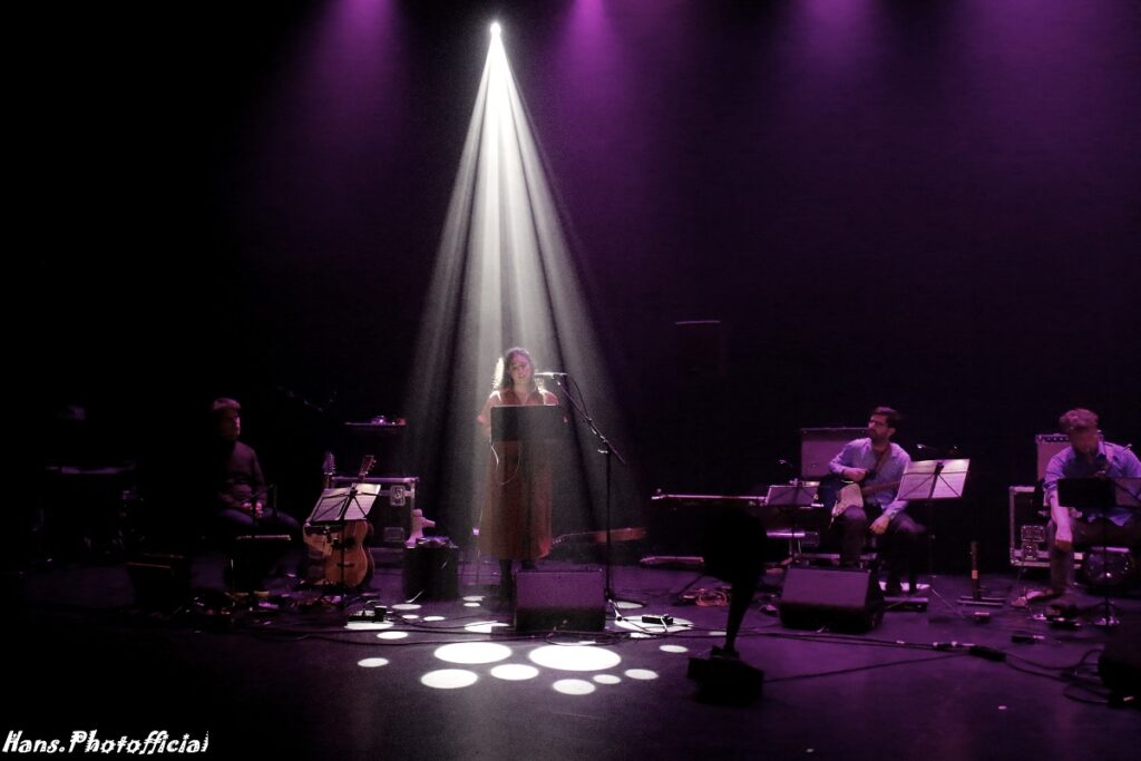 Ze bracht een indrukwekkende vertolking van haar werk At The Spot Where I Find Myself. Ze verhaalde deels parlando maar vooral muzikaal wat in het hoofd omgaat van een vrouw in de beslotenheid van haar appartement. Elk detail werd uitvergroot waardoor we met een volle zaal soms wel en soms weer helemaal niet bij haar in de sofa wilden zitten en dat is nu net wat ze wilde duidelijk maken. Ze hield haar jas aan voor het hoofdstuk By The Sofa. Ze hield haar jas aan want ze wilde er niet zijn of toch net weer wel. By The Soap ging dan tergend traag over het ritueel van handenwassen. “I can’t get enough of her”. Ze bedoelde wel degelijk de zeep. Ze vroeg dan voor het volgende nummer By The Light om de zaallichten aan te steken zodat ze het publiek kon zien en haar band kon voorstellen.