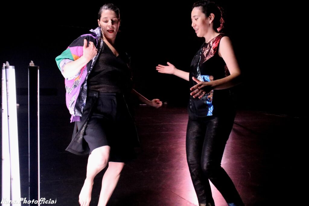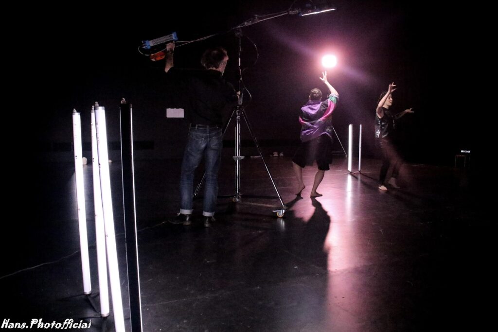 Choreograaf Etienne Guilloteau had voor zichzelf ook een rol uitgeschreven want hij liep de volle drie kwartier rond op het podium waarbij hij constant de verlichtingsarmaturen verplaatste, verdraaide of neerlegde. Uiteraard was de act van beide artiesten op het podium daarvoor uitgeschreven. Danseres Claire Croizé danste een optreden lang hoofdzakelijk getooid in een foute eighties trainingsjas die binnenstebuiten gekeerd een aluminium-achtige alien-jas werd.