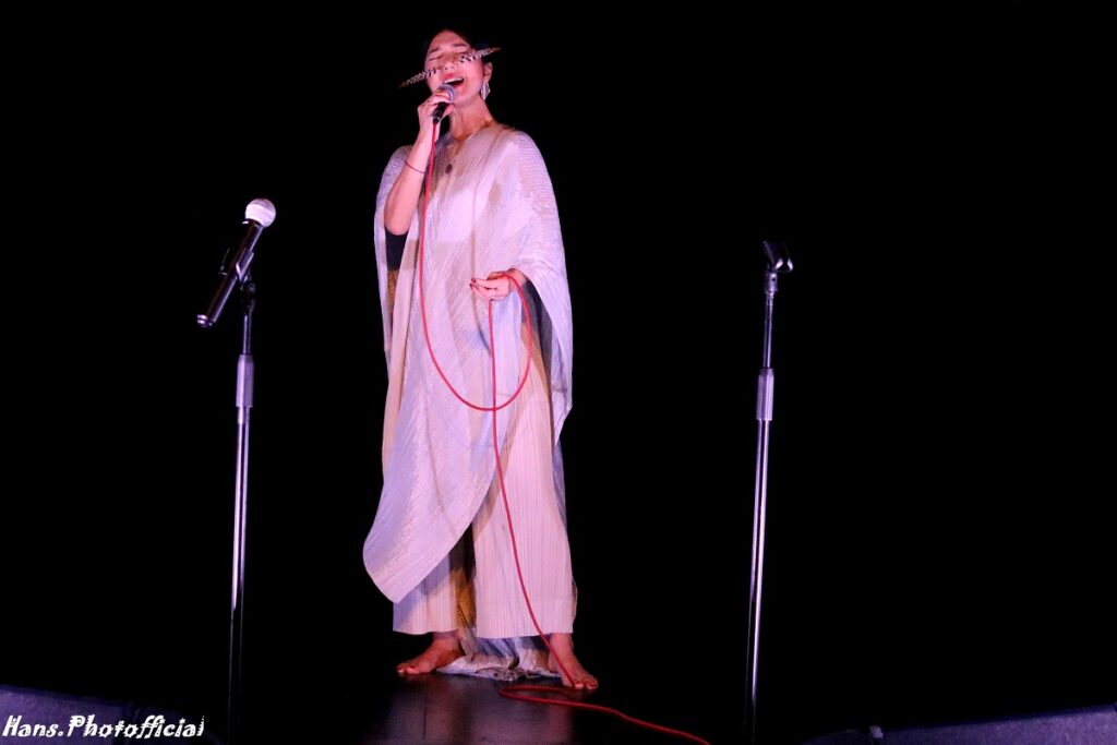 Wat haar zo bijzonder maakt? Hatis heeft geen instrumenten nodig om te betoveren, enkel haar stem en twee microfoons die verbonden zijn met de pedaltrain aan haar blote voeten. Met haar tenen klikte ze op een effect waardoor ze haar stem op diverse manieren in een loop opnam en terug liet komen in de zang. Laag grommend, hoog en schel, of het geluid van een vogel simulerend zoals in het adembenemende slotnummer Sir Etok. La Noit was een verrukking voor oor en oog. Hatis nam ons mee in de wondere wereld van de stemkunstenarij.