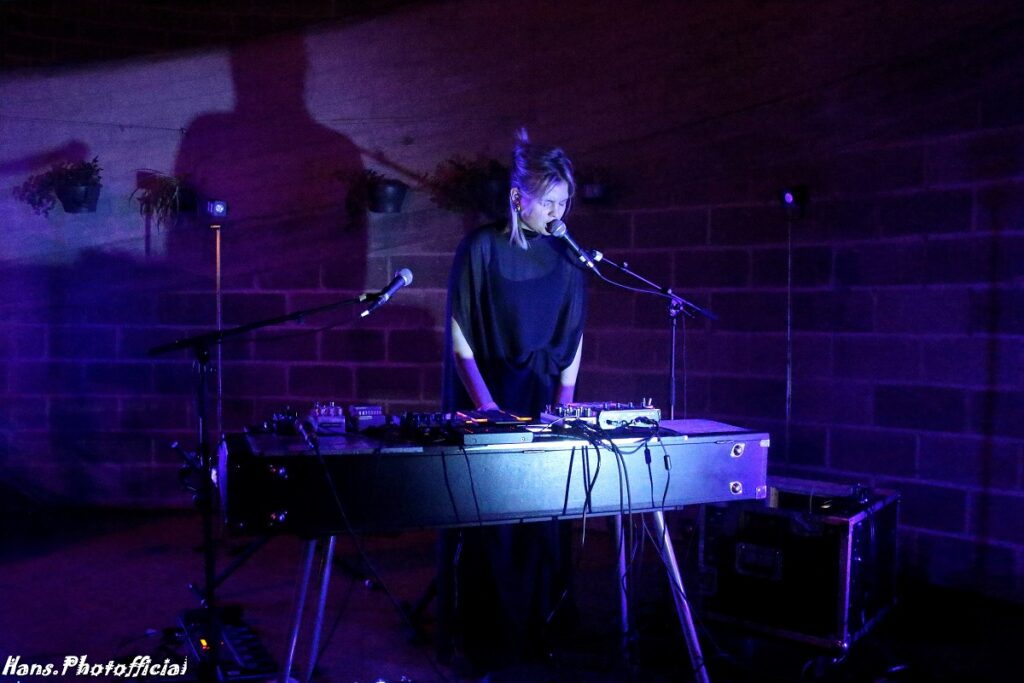 Dienne Bogaerts heet op het podium gewoon Dienne en haar ervaringen met haar zus in Lili Grace en de pandemie leidden tot het werkstuk Addio, Italiaans voor vaarwel. Het stuk werd geschreven om het verlies van haar grootmoeder (tijdens covid) een plaats te geven. Ze gebruikte stemfragmenten en opnames uit het verleden in het begin en aan het eind van de set om de sowieso al imposante composities op piano, sampler, hobo en fluit nog meer draagkracht te geven. Dienne stond met haar nummers al op Le Guess Who?, BRDCST en Rewire. We waren altijd al onder de indruk van haar ogenschijnlijk moeiteloos vermogen te switchen van het ene fel binnenkomende instrument na het andere, maar wat ze uit de launchpad en sampler haalde was heel erg knap.