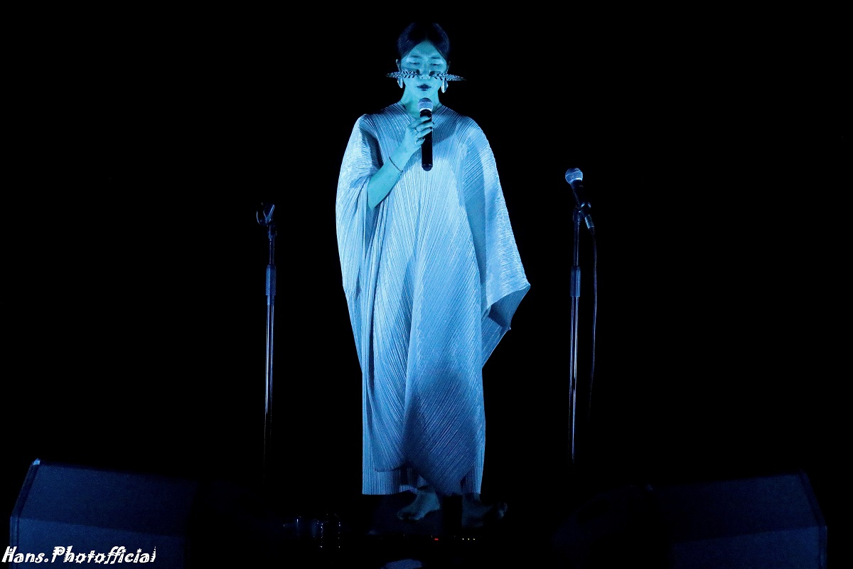 Ze raakte als tiener gefascineerd door monnikengezang in Nepal en liet zich verder inspireren door opera, Björk, Gregoriaanse en Bulgaarse gezangen. Op een unieke wijze laat ze in haar songs de natuur integreren en samensmelten met wat ze doet. De enige song waarin ze de natuur niet op natuurlijke (sic) wijze nabootste met haar stem was Inori. Hier werd ze versterkt met geluidsopnames van de oceaan aan de kust van Fukushima waar ze op bezoek was en onder de indruk raakte van de diepe emoties die daar loskwamen na de doortocht van de tsunami in 2011. Ze wandelde door een verduisterde zaal en werd schaars opgelicht wat de rouwstoetmodus spookachtig mooi versterkte. Ze was ook de enige artieste die ruim de tijd nam wat toelichting te geven bij wat gebeurde en bij wat iedereen hoorde en zag. Het charisma van Hatis Noit was fenomenaal. Haar dankbaarheid was ook nu weer van dezelfde grootteorde want ze herinnerde zich nog de passage op Sonic City, in hetzelfde Kortrijk van hetzelfde Wilde Westen. Het was – om precies te zijn – de laatste Sonic City vóór King Covid op de troon kwam.