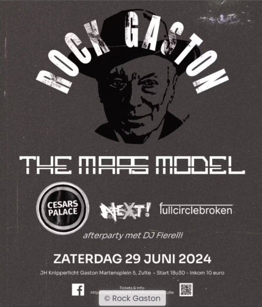 Op de affiche staan: Fullcirclebroken, NeXt!, Cesars Palace en The Mars Model.