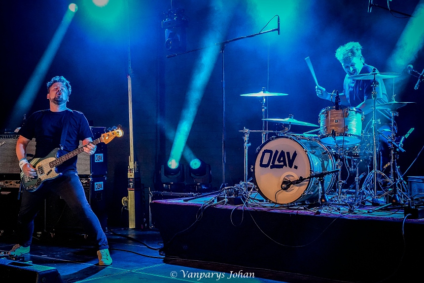 Het festival werd geopend door de mannen van OLAV. Dit West-Vlaamse rockduo had niets meer nodig dan een basgitaar, een drumstel en twee krachtige stemmen om hun energie en emoties over te brengen aan het publiek. Dieter Buyck bespeelde de basgitaar en verzorgde het grootste deel van de zang, terwijl Maarten De Graeve de drums en backing vocals voor zijn rekening nam. Maarten schuwde het ook niet af en toe de leadzang op zich te nemen. Deze tweekoppige band zorgde ervoor dat je benen niet stil konden blijven en is dus absoluut de moeite waard om eens te beluisteren.