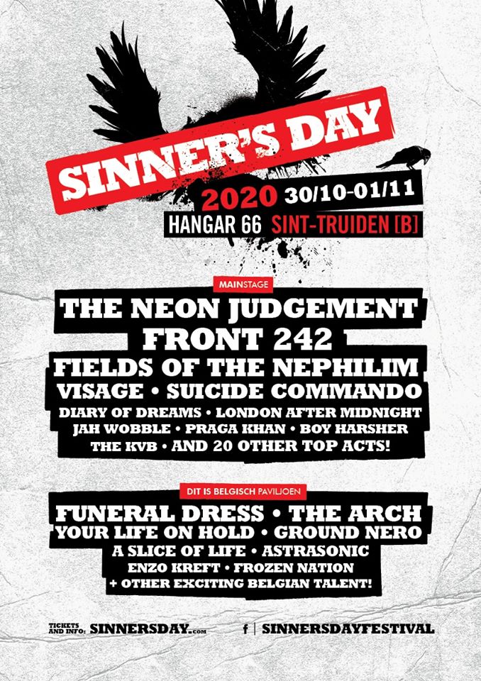 Elk van ons heeft wel een andere reden om Sinner’s Day legendarisch te noemen, maar ook dit jaar zal de dag der zondaars duister kleuren. En deze keer onder nieuwe vleugels, want het W-fest-team liet weten nu ook Sinner’s Day onder zijn hoede te nemen. De editie van 2020 wordt een driedaagse in Hangar 66 in Sint-Truiden. Ondanks het feit dat we dit jaar geen W-festival kunnen ervaren, belooft Sinner’s Day toch nog een flinke portie punk en new wave in dit anders povere festivaljaar.