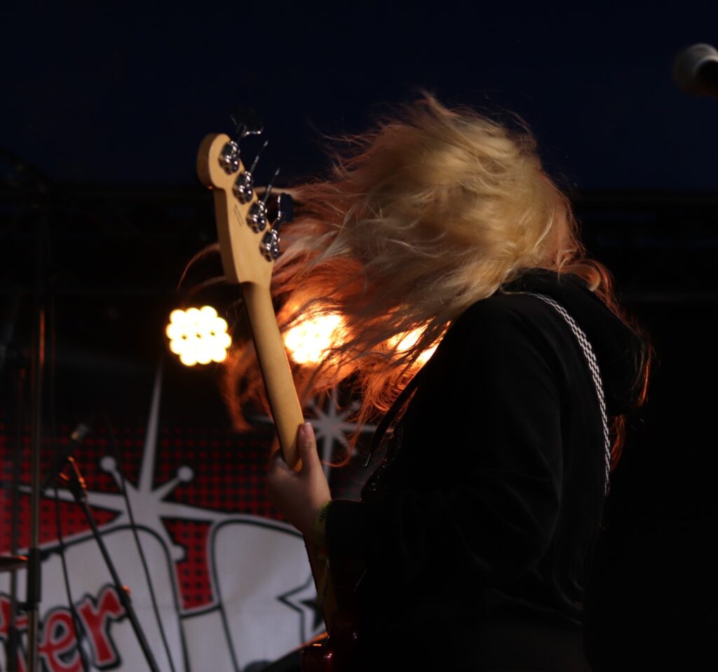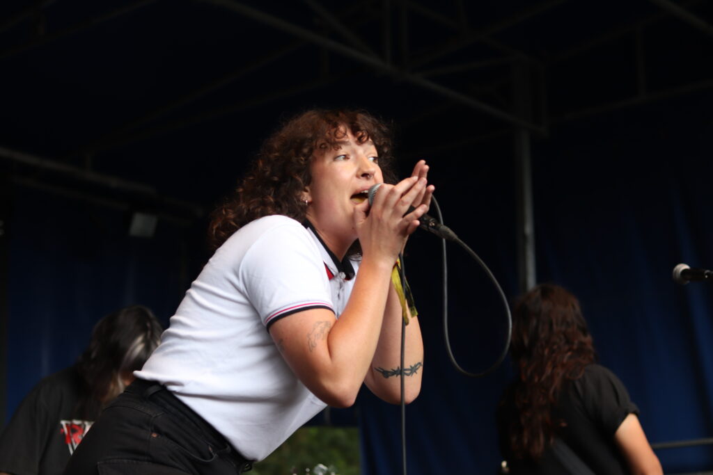 Vroeg uit de veren en 35 kilometer gefietst om op tijd te komen om een van de liverevelaties van 2023 te kunnen bewonderen. Bezweet en met een frisse pint in de hand zagen we Lambrini girls een duivelsuitdrijving doen waarbij ze iedereen stil kregen met zowat hun hele prille oeuvre. Toch hadden we te doen met zangeres Phoebe Lunny toen we ze enkele uren na haar show zigzaggend over het terrein zagen waggelen. “Als de drank is in de man…..euhm…..vrouw”.