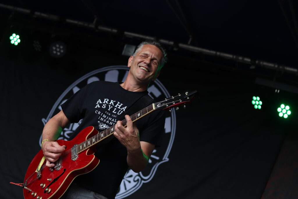 Het is geen geheim dat er op Sjock een ‘ons kent ons’ sfeertje hangt, dat merkten als we verdwalen tussen het volledig uitverkochte terrein. Soms leek het of er meer muzikanten in het publiek stonden dan op het podium. Terugkomende van de recyclestand om weer een frisse pint gescoord te hebben, hoorden we iemand zijn gemis etaleren over Frantic Franky, die normaal altijd paraat is om de acts in de Titty Twister aan mekaar te praten. We lieten het niet aan ons hart komen en botsten zo nog even op de powerpunk van Dick Move. Deze keer werden er geen secundaire geslachtsorganen opgemerkt tijdens onze korte doortocht aan dat gekke talentvolle Bang Bang podium, thank God!