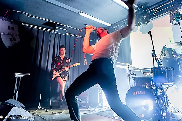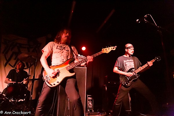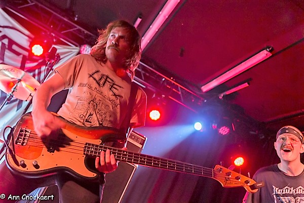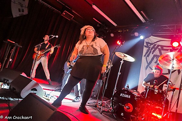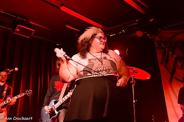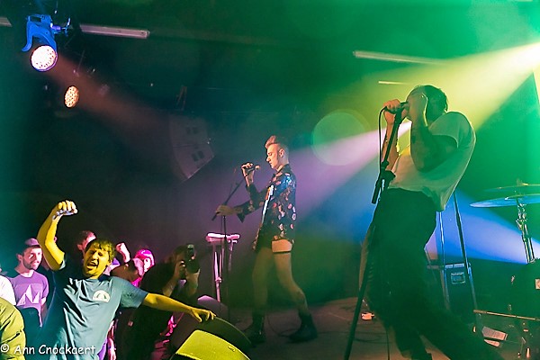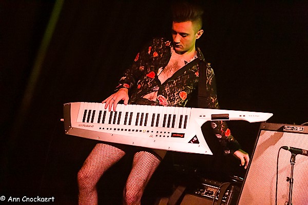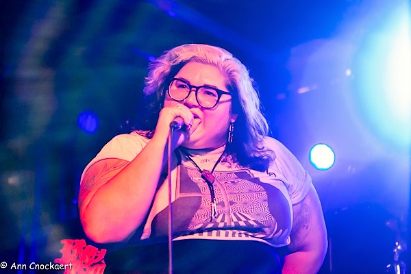 De eerste band is getekend op het vermaarde Sacred Bones en afkomstig uit Santiago. En zo kom je uiteraard snel op Föllakzoid uit. Wie hun een paar weken eerder in de Botanique zag of hun vierde album hoorde (contradictorisch I genaamd) weet dat de Chilenen tegenwoordig uit een ander muzikaal vaatje hun water tappen. De vroegere psychedelische krautrock heeft plaats gemaakt voor beukende technobeats met zware bassen. Een muziek die je als trip dient te ervaren en aardig lukt, ook al krijg je de nogal vreemde show van Domingæ Garcia-Huidobro er gratis bovenop. Voor deze transgender is het podium een soort van catwalk die dient om te paraderen en het rookverbod aan haar zatte laars te lappen. Wat ze in Brussel niet of weinig konden werd in Kortrijk wel geklaard, een publiek in trance houden. Een respect dat een paar uren later als zon voor de sneeuw verdween toen de tamelijke irritante Domingæ tijdens de show van Sheer Mag het opportuun vond om over het publiek een volle fles whiskey te kelderen.