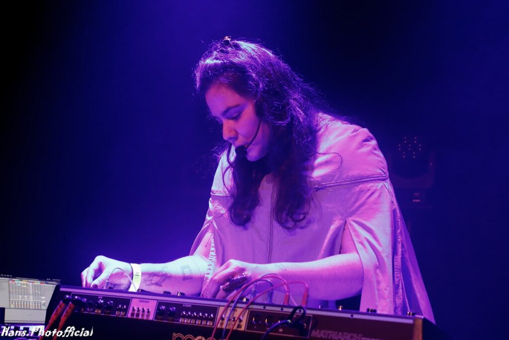 We konden ons in de grote zaal dan opmaken voor wat één van de absolute hoogtepunten van het weekend zou blijken. De Colombiaanse Lucrecia Dalt zagen we al aan het werk op Les Nuits, maar ze bezorgde het woord ‘indrukwekkend’ in de Départ een diepere connotatie. Ze kwam in een steevast duistere setting zelden vanachter haar modulaire synths en keyboards tevoorschijn maar Alex Lázaro was een attractie op zich in zijn drumjungle. Zijn expressieve manier van drummen leek eerder op een soort Latijns-Amerikaanse danschoreografie in de stijl van Battles. Voor haar nieuwste plaat ¡Ay! mixte ze traditionele geluiden als bolero en salsa door haar modulaire synths.