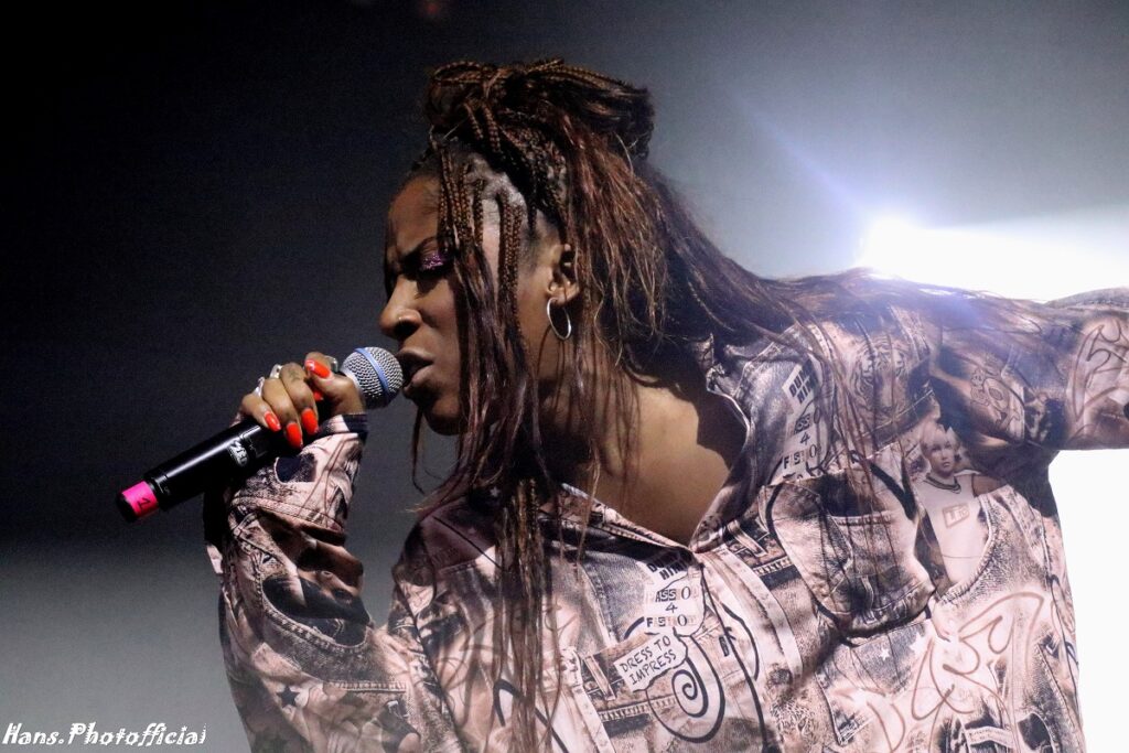 De “aha hahahaha” uit Home is vintage Adigéry en het nummer is pure DEEWEE met de onweerstaanbare zinsnede “home never feels like home”. “All the people that stick to us, we call them home”. De heerlijke groove en donkere electro liet Laima een concert lang met afgemeten en bedaard uitgevoerde armbewegingen ‘downstairs’ vloeien. Heel typerend was het om de haverklap als in een ritueel uittrekken van kabeltjes uit haar Moog om die dan terug in te pluggen. Toen Laima op de eerste rijen Charlotte Adigéry zag staan verwelkomde ze die met een lach en een “There is a mama in da house”. Knappe prestatie van Mrs Cavalera. Van bedlinnen ging het naar badlinnen.