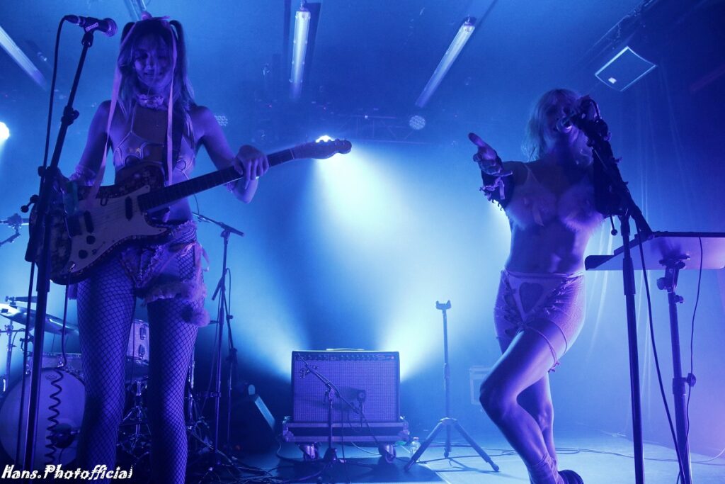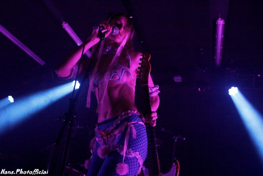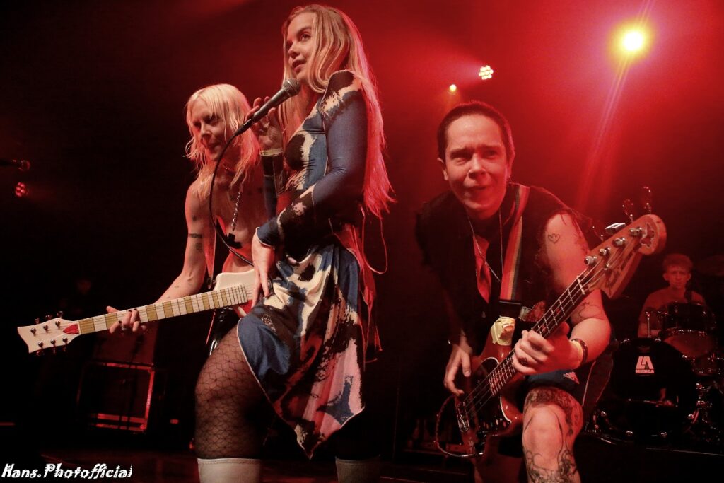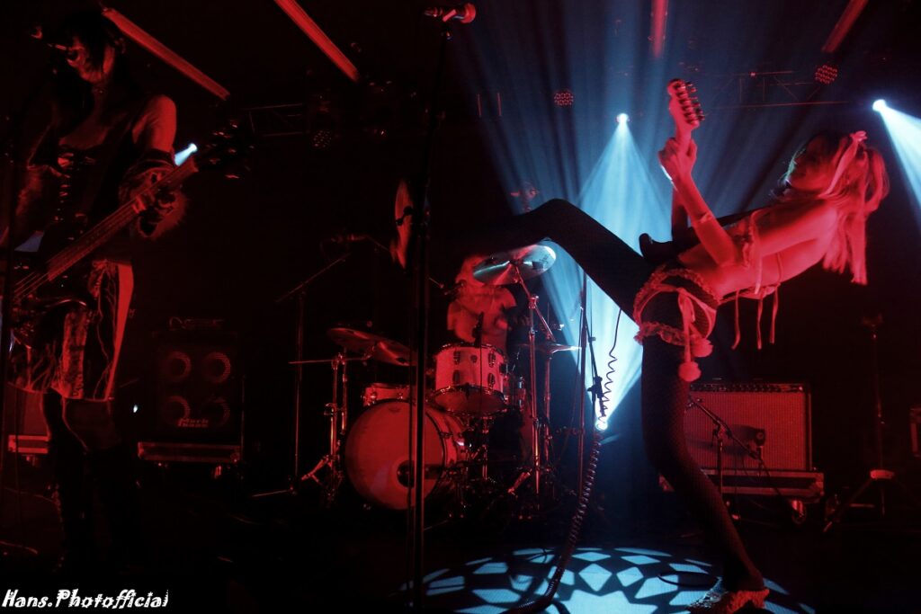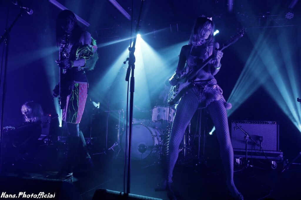 Lida Fox manifesteerde zich centraal op het podium als de ‘bandleader’ want ze was de eerste zangeres en tevens bassiste. Ze was in een soort Joan Jett look uitgedost. Met zwarte zonnebril en zwart lederen punkjasje was gitariste Avishag Cohen Rodrigues de meest energieke op het podium. Ze kwam ook het publiek in. De andere dames waren als erg sexy en schaarsgeklede lolita’s uitgedost. Drumster Chase Lombardo droeg een fluffy niemendalletje als beha en gitariste en tweede stem Veronika Vilim was de langbenige schone met netkousen en de geile poses. Iedereen nog mee?