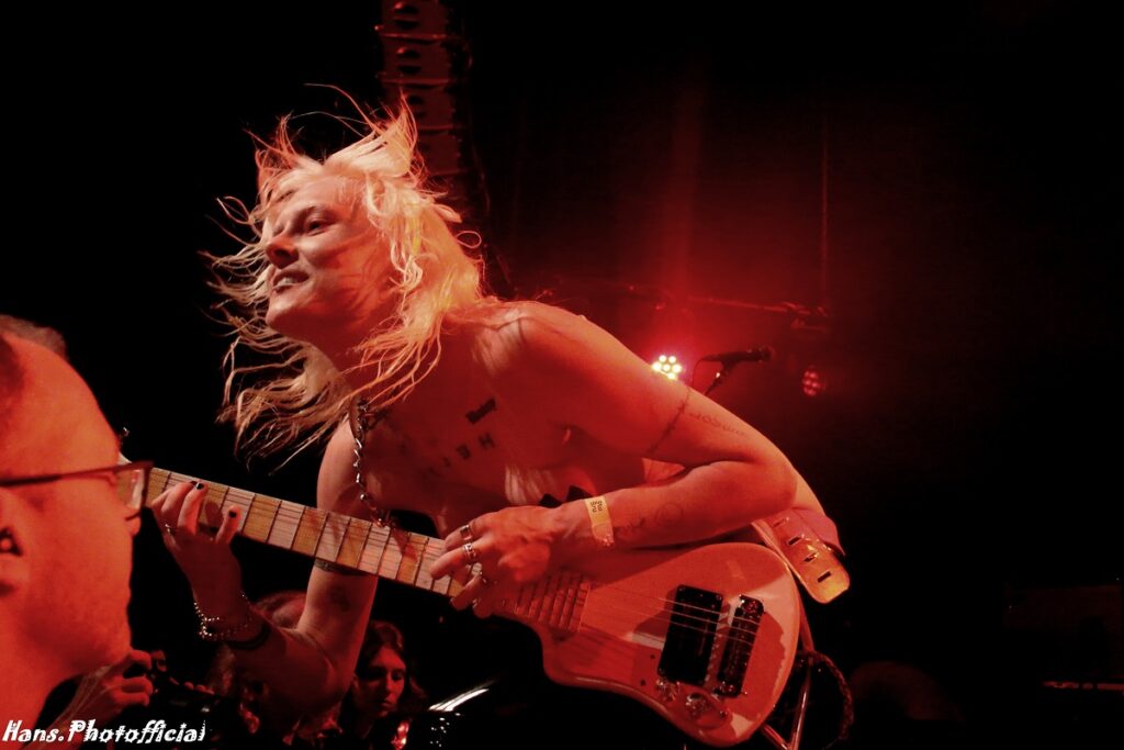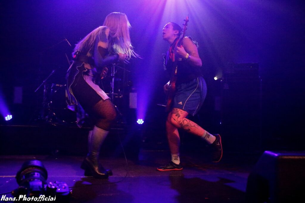 Hot (Don’t Date A Musician), één van de absolute hoogtepunten van Sonic City 2023, opende met een vraagje van Rakel: “Are you feeling hot?” Ze stelde haar bandleden dezelfde vraag. Alice had ondertussen haar kleren uitgespeeld en werd enkel van de tepelpolitie gered door zwarte plakband op de betreffende zones. Met de grootst denkbare glimlach vocht ze meerdere luchtgitaarduels uit met Bella die ondertussen aan een workout bezig was. We hebben ze op de grond zien liggen, maar ook aan het platform van de drumkit. Geef toe, wie wordt niet vrolijk van deze tekst? “Don’t date a musician. They’ll think you’re a competition. I was never competition, I was just hot”. Orbit (ook van de sterke nieuwe plaat) en oudje Somebody (ode aan alle bad bitches en dat is geen geslachtskwestie want een bad bitch is iemand die andere bad bitches steunt) pompten het optreden op tot we aan het furieuze slot aanbeland waren.