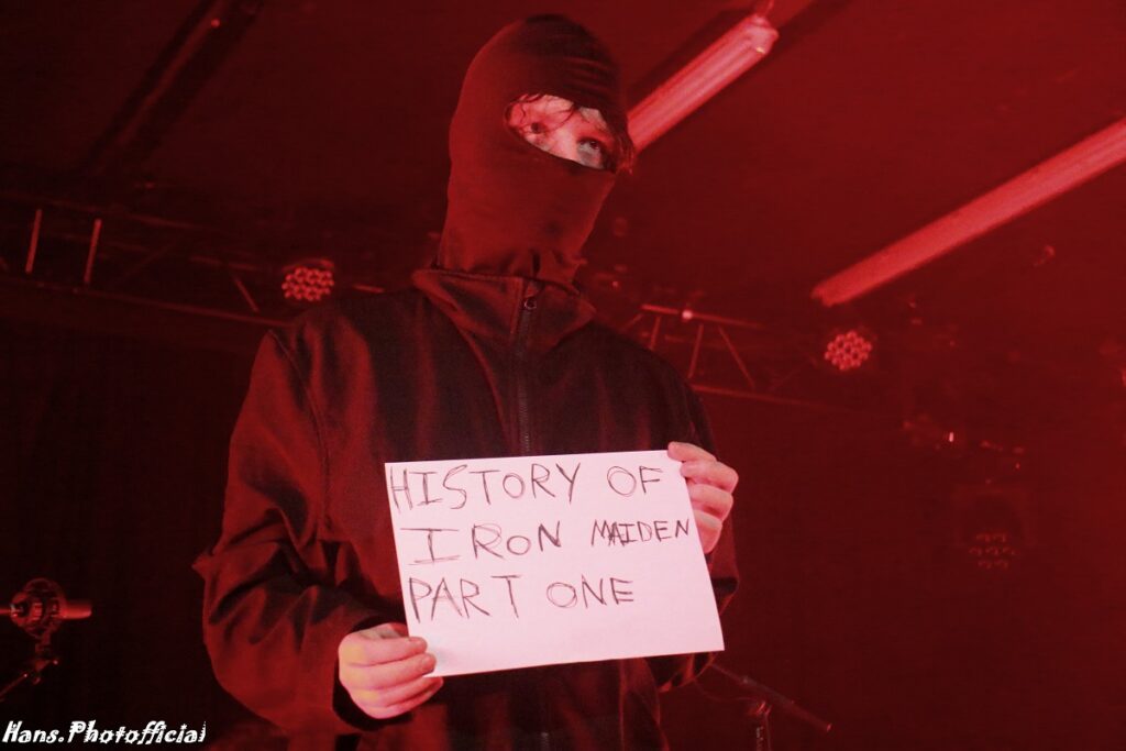 Zijn geheimzinnigheid droeg op hilarische manier bij aan de dampend hete set van het jonge viertal. De set opende en sloot met de songs History Of Iron Maiden Pt2 & 1. Ook de andere songtitels waren van hetzelfde hoog niveau, of wat dacht je van Massive Top Tattoo en Notre Dame Made Out Of Flesh? Vier bandleden, vier songs, en heel hoog niveau. Het ingangsexamen aan de University was cum laude geslaagd.
